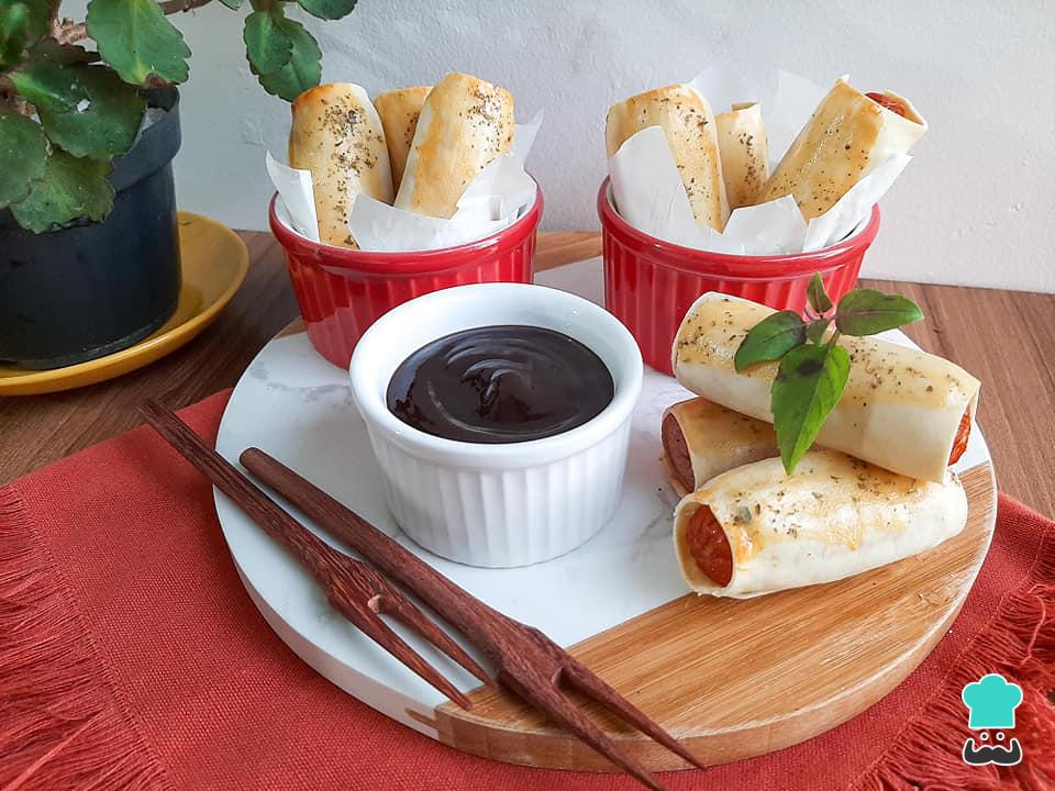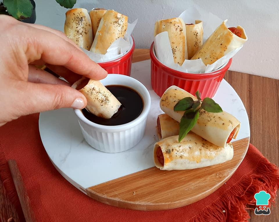 Seus enroladinhos de salsicha feitos com massa de pastel estão prontos para serem servidos! Experimente servir com molho barbecue ou com mostarda, ficam deliciosos!