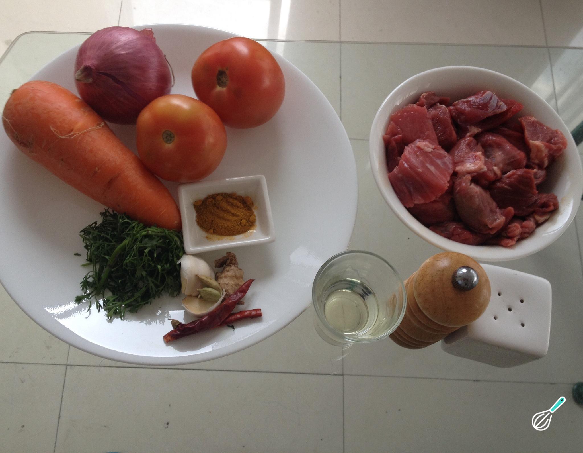 Prepare todos os ingredientes para fazer o seu ensopado de carneiro.