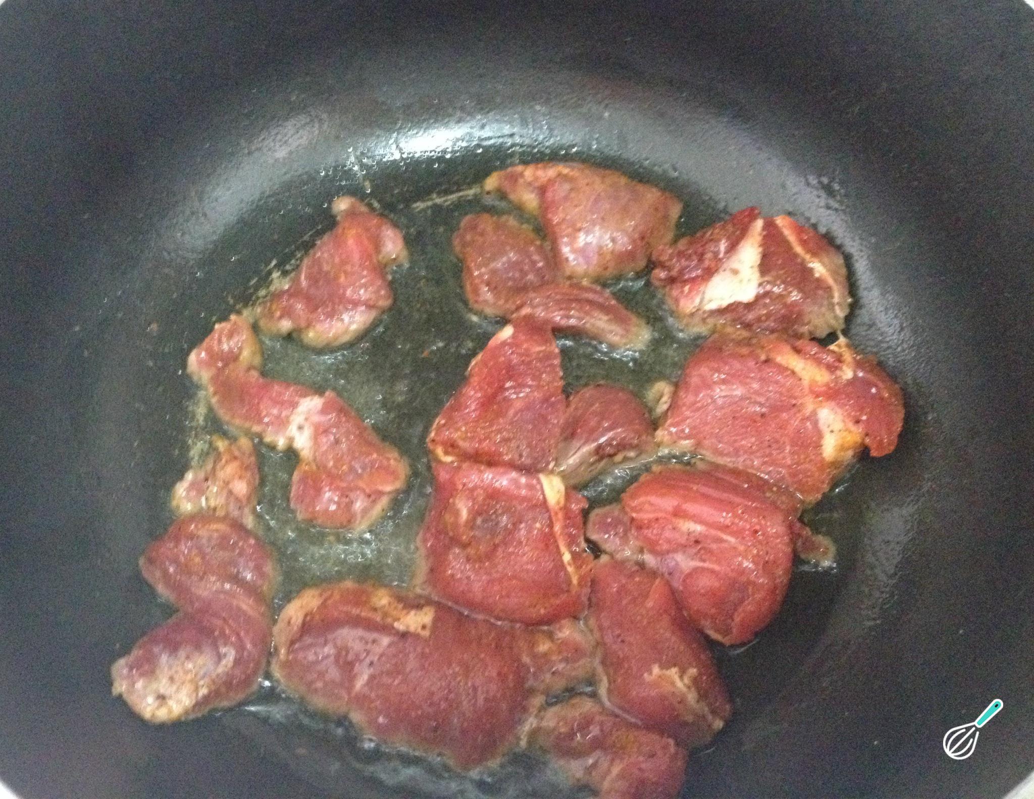 Coloque a carne em uma panela com óleo até ficar dourada, retire e reserve.