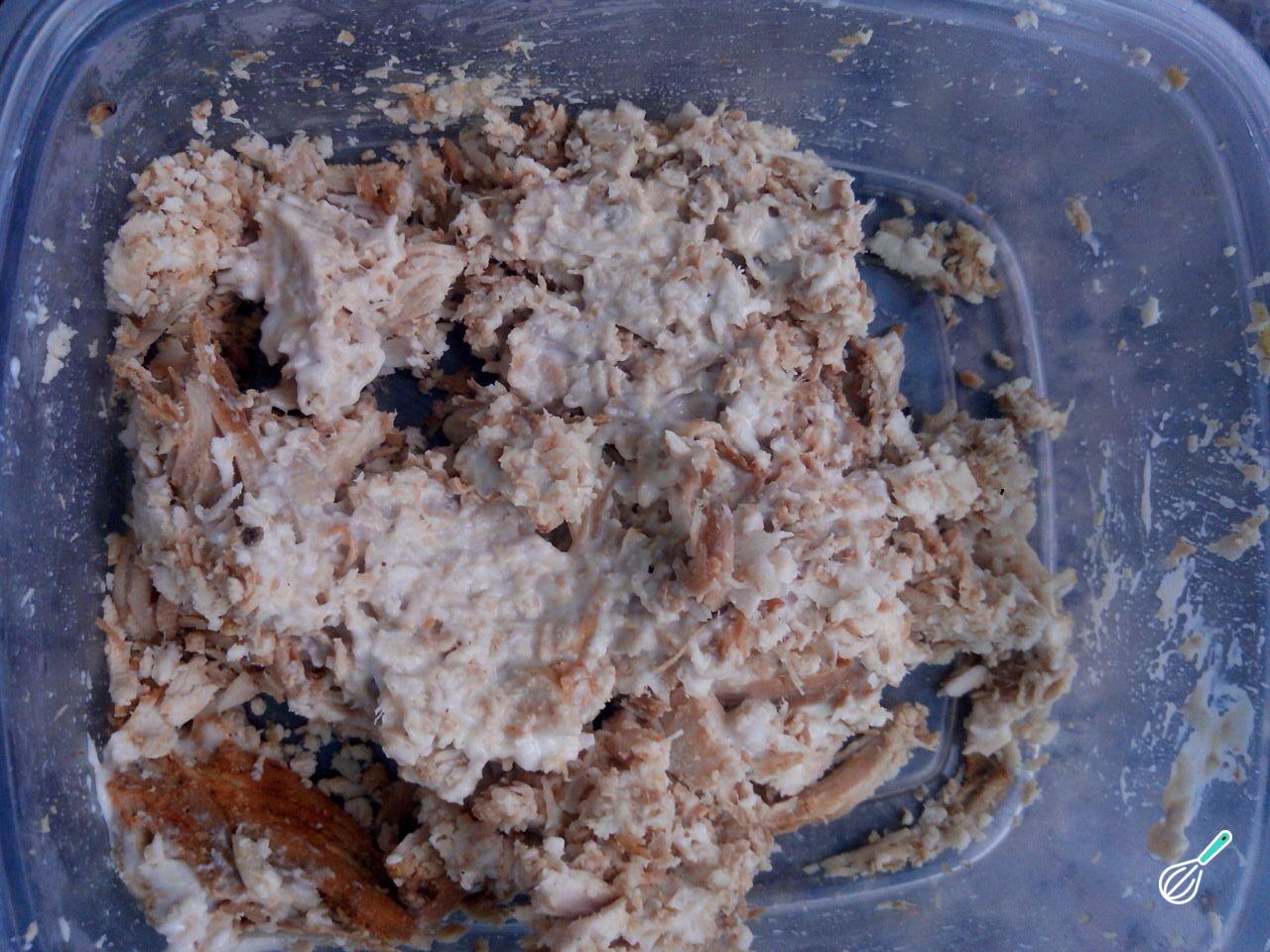 À parte desfie o frango e junte com o requeijão, misturando bem. Adicione sal se achar necessário.