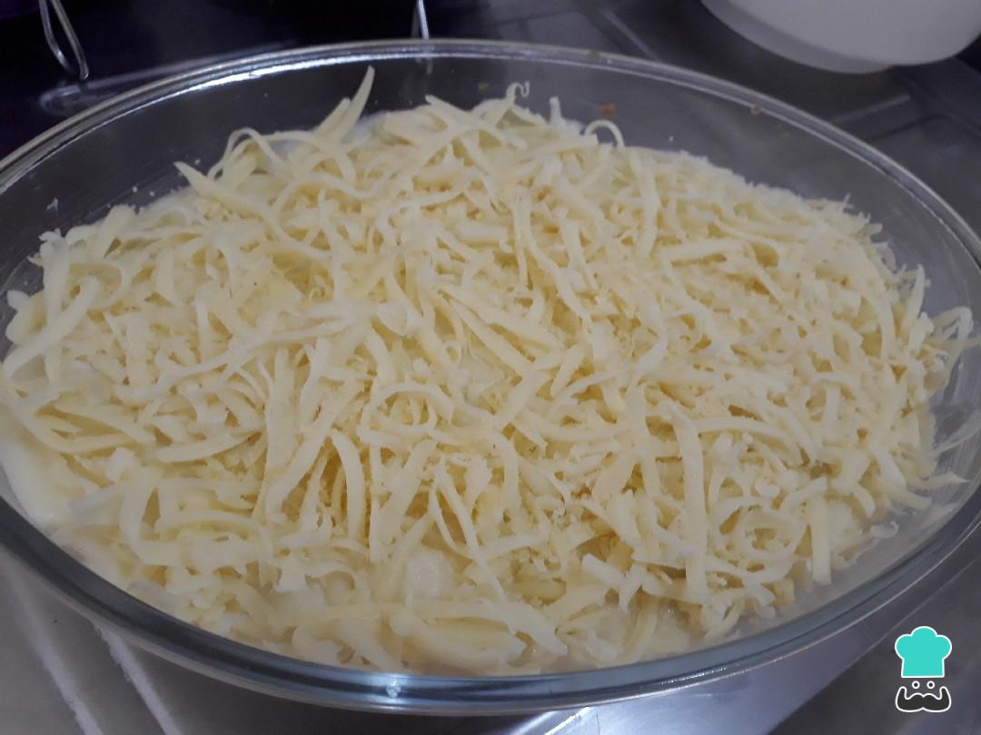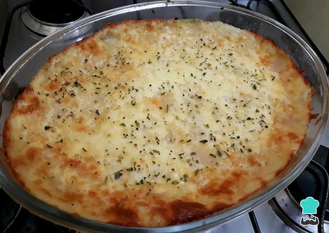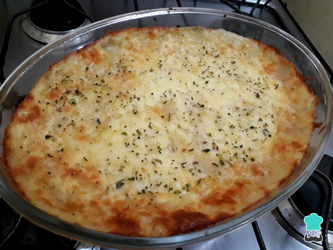 Coloque o restante do purê e cubra com mussarela. Leve ao forno pré-aquecido 200 C° até gratinar.