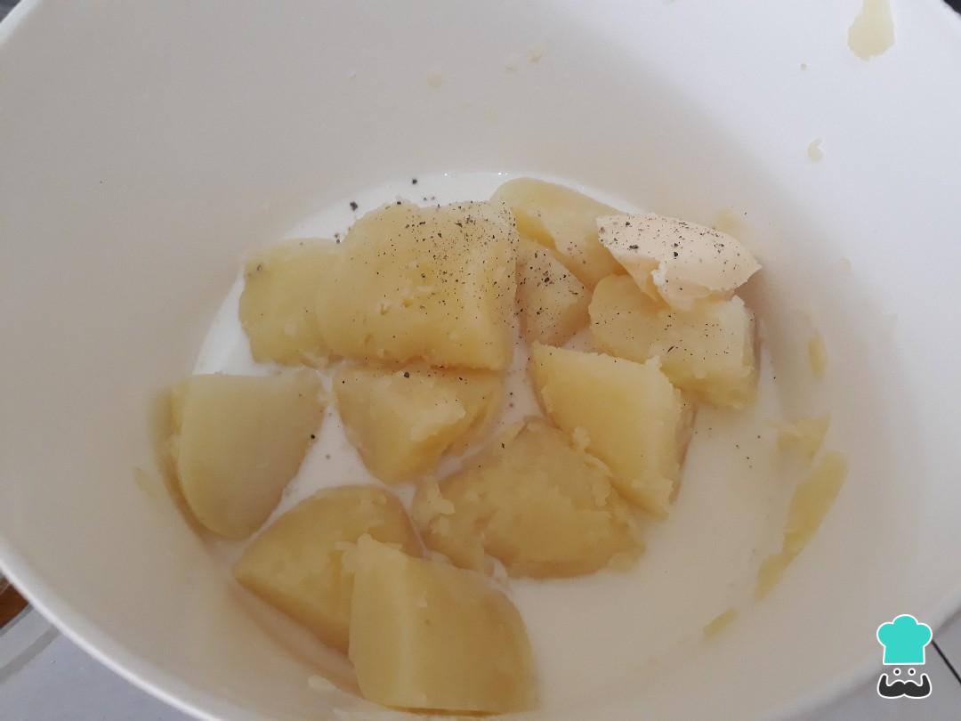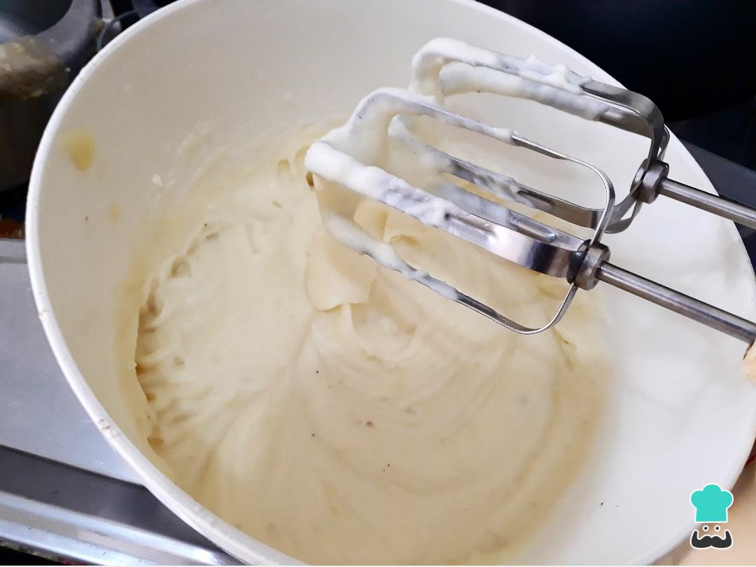 Para preparar o purê de batatas iremos batê-las na batedeira - isso proporcionará um purê bem lisinho e cremoso, como mostra na foto! Comece por bater em potência mínima, depois aumente a velocidade.