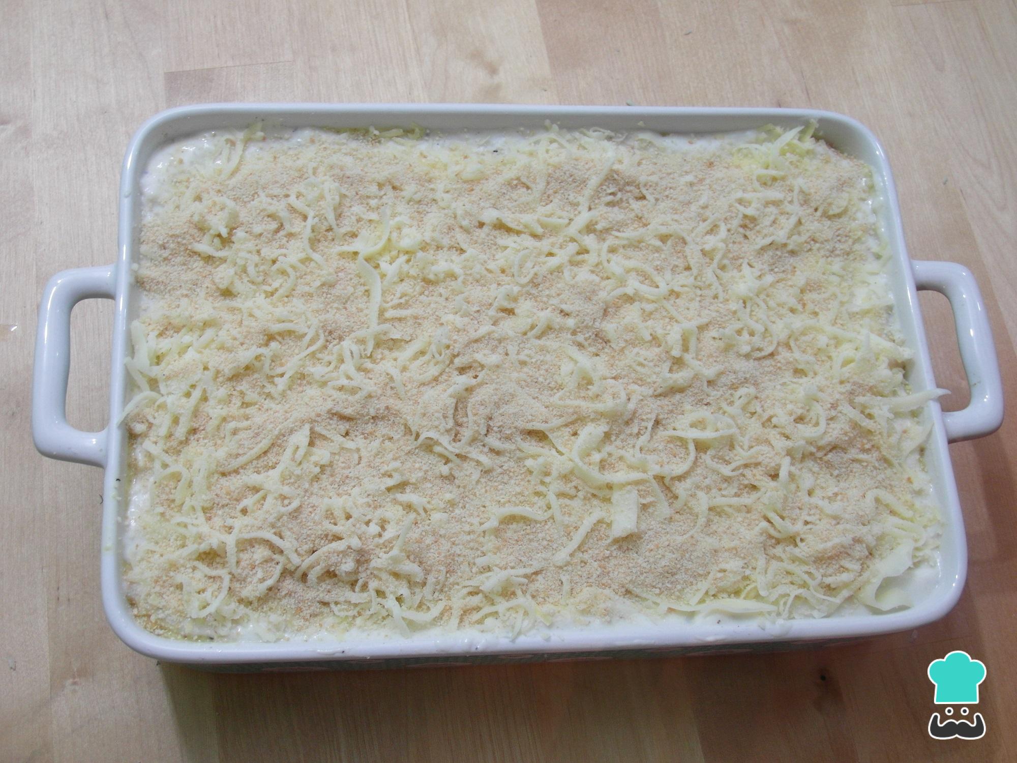 Em seguida em um refratário de vidro, coloque a calabresa e em cima coloque o purê, fechando como uma torta. Logo polvilhe com queijo ralado e leve ao forno pré-aquecido a 180 º C por 15 minutos para gratinar