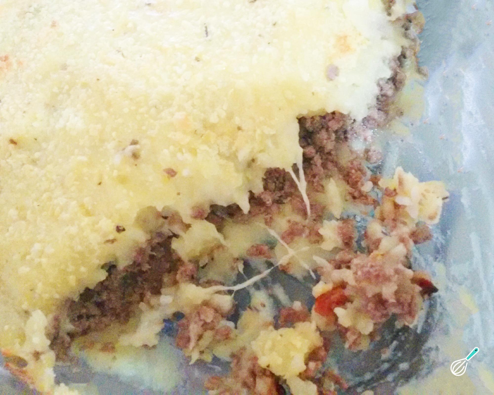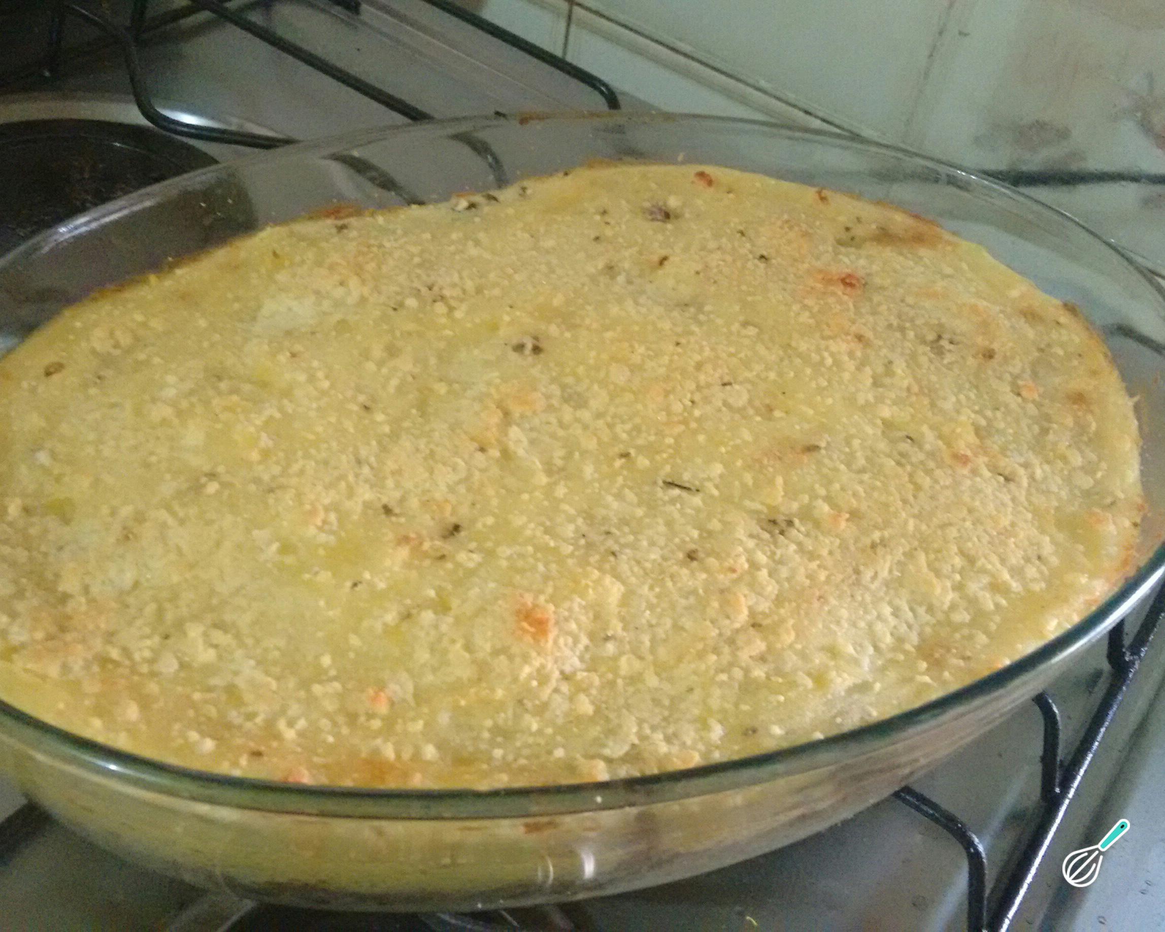 Complete com o restante purê, polvilhe o queijo ralado e leve ao forno pré-aquecido a 200ºC para gratinar por aproximadamente uns 10 minutos.
