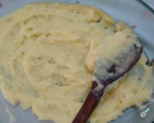 Descasque as batatas e amasse-as com a ajuda de um garfo. Em uma panela coloque a margarina e, quando derreter, acrescente as batatas e o leite, mexa bem. Tempere o purê com orégano, pimenta calabresa, cúrcuma e sal.