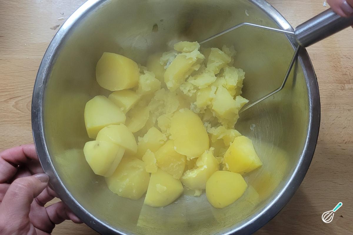 Escorra as batatas, deixando escorrer o excesso de água e transfira para uma tigela. Tempere com sal e pimenta do reino a gosto.