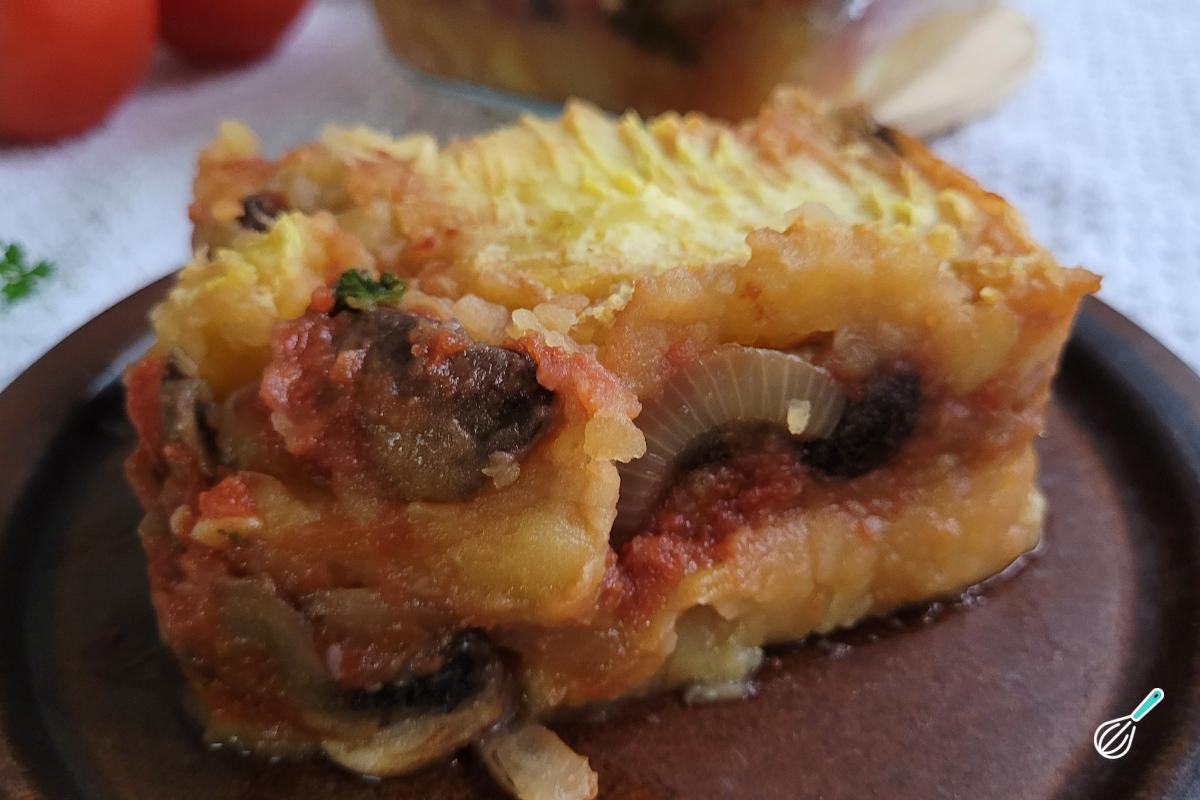 Espere esfriar um pouco antes de cortar e está pronto seu escondidinho de cogumelos.