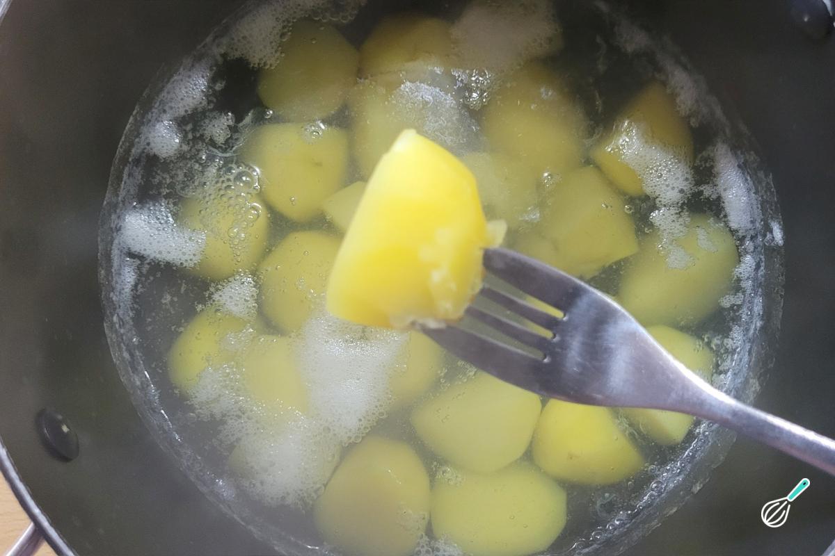 Verifique se as batatas estão macias. Elas devem ser facilmente espetadas com um garfo.