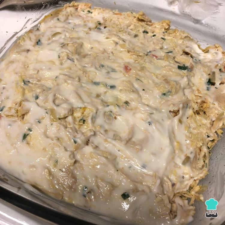 Por cima coloque uma camada de requeijão light ou creme de ricota. Assim você conseguirá um escondidinho cremoso e mais saboroso!