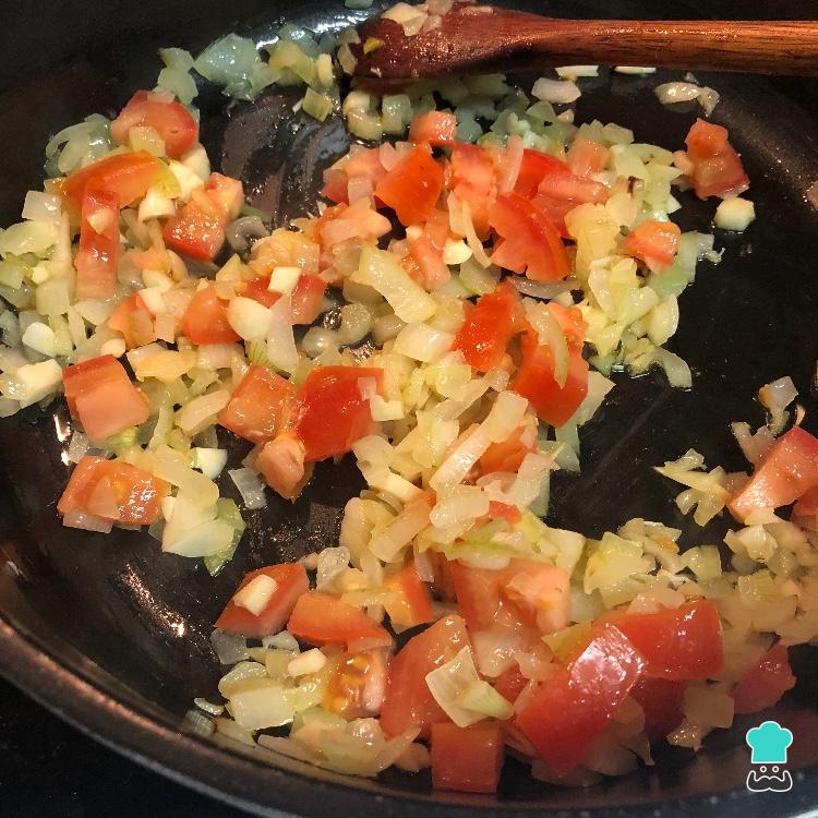 Junte o tomate picado e refogue mais um pouco, colocando um fiozinho de água, se necessário.