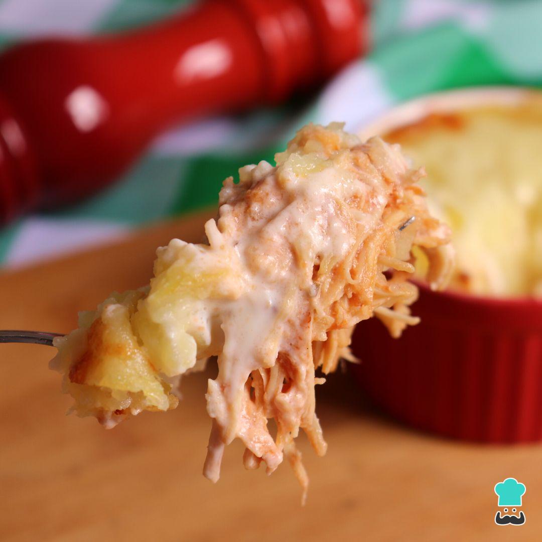 Essa receita de escondidinho de frango é ideal para duas pessoas e fica super, super cremoso.