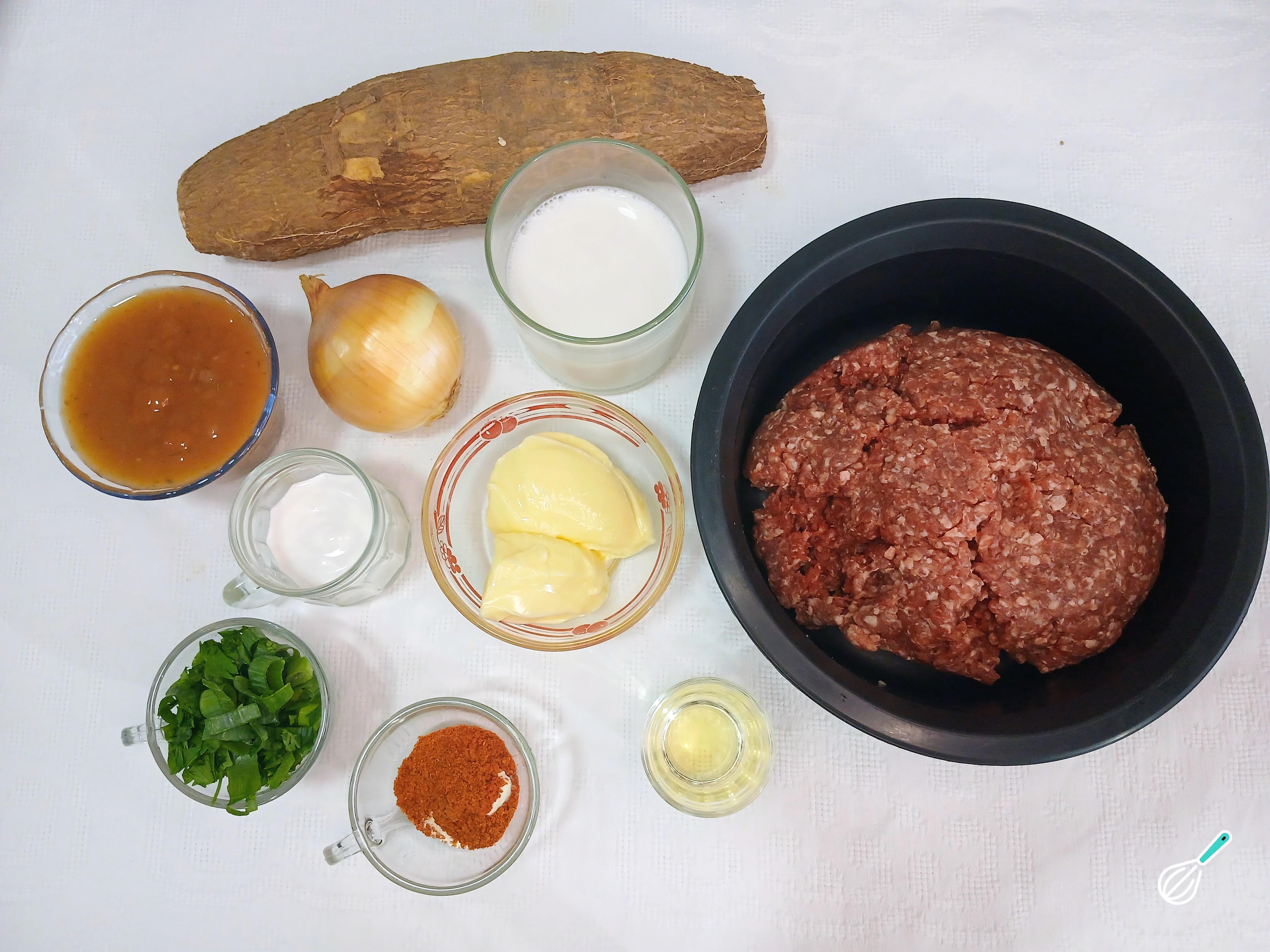 Ficou curioso/a e quer aprender a preparar este delicioso prato? Pegue papel e caneta e anote os ingredientes que serão usados na receita de escondidinho de mandioca com carne moída.