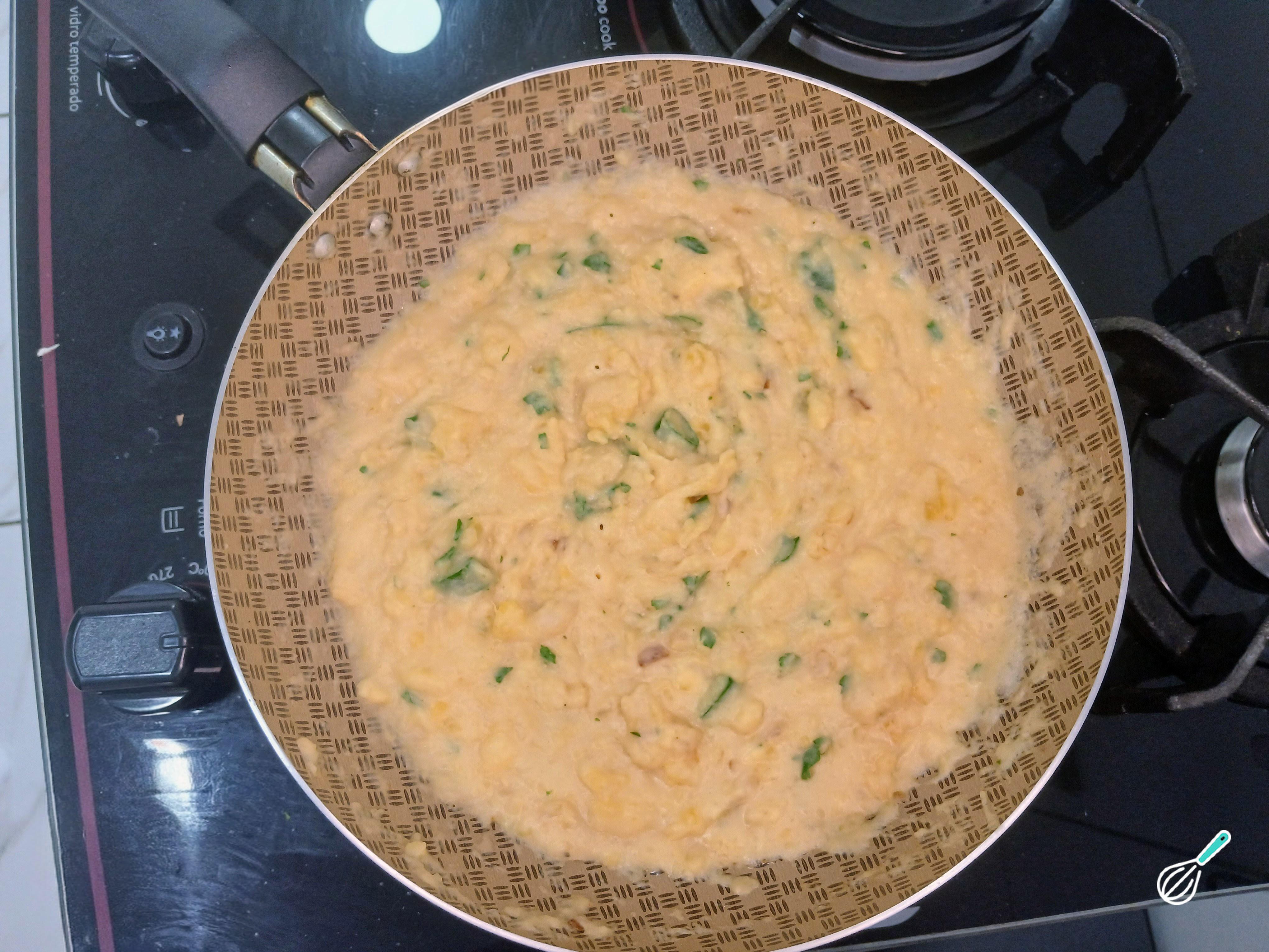 Adicione cebolinha verde e salsinha e deixe tudo bem misturado como uma papinha.