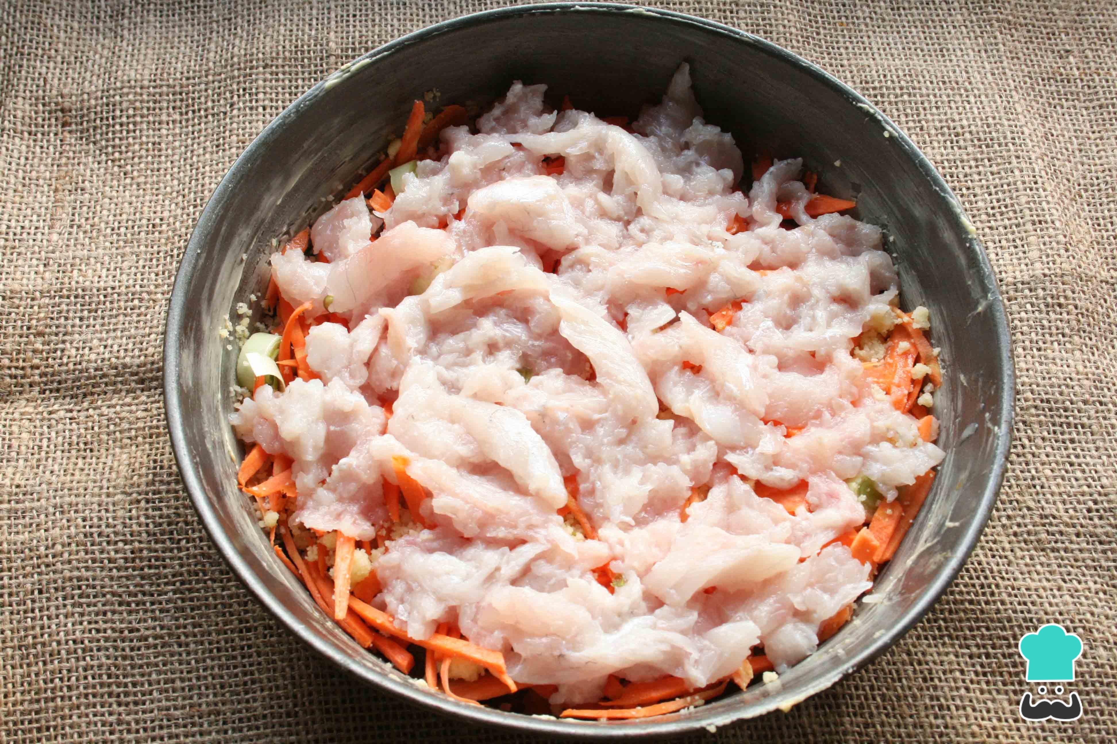 Seguidamente comece preparando os legumes deste escondidinho: rale as cenouras, corte o alho poró em rodelas e coloque num bowl com as raspas de limão, para um sabor extra. Junte o queijo ralado, misture e reserve.