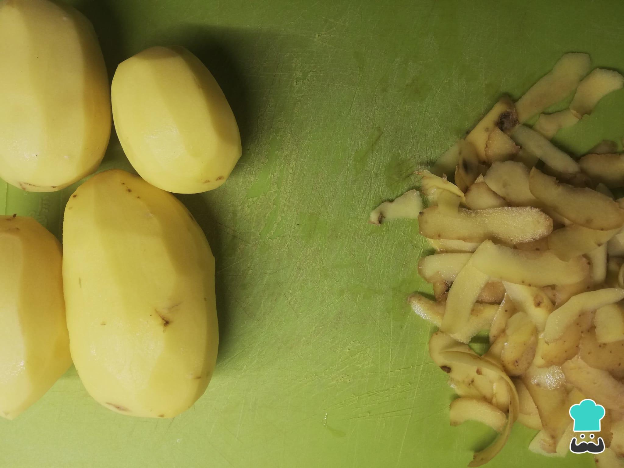 O primeiro passo é lavar as batatas, descascá-las e cortá-las em fatias pequenas, para cozinharem mais rápido.