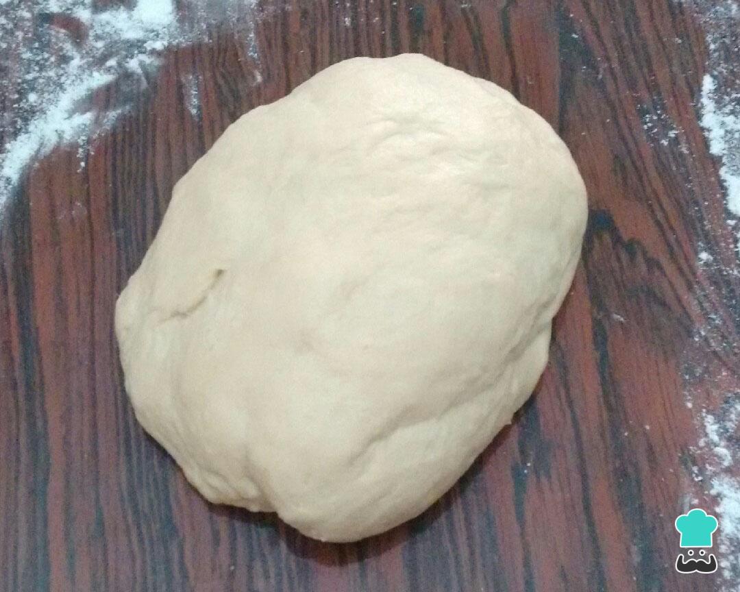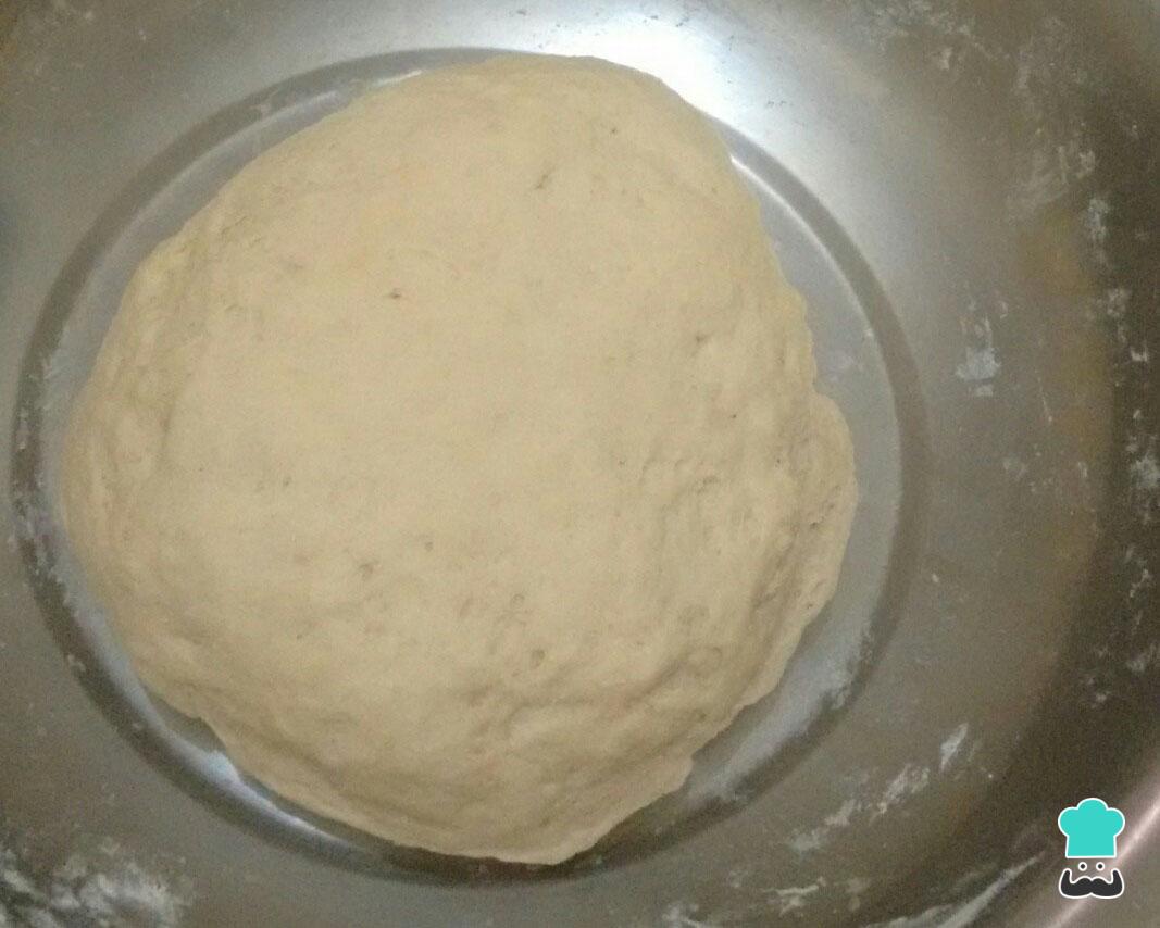 Sove a massa da esfiha caseira até ficar mais lisa e elástica. Depois deixe a massa descansar por 40 minutos em um local ameno, ou até dobrar de tamanho.