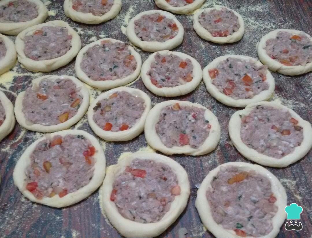 Molde as esfihas como na imagem e deixe descansar por 10 minutos.