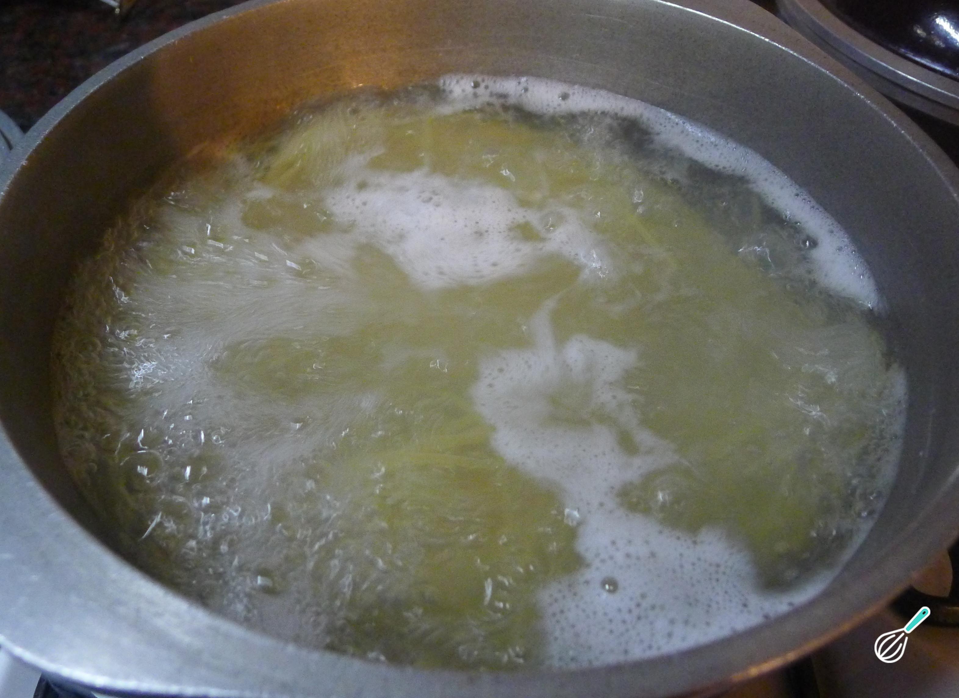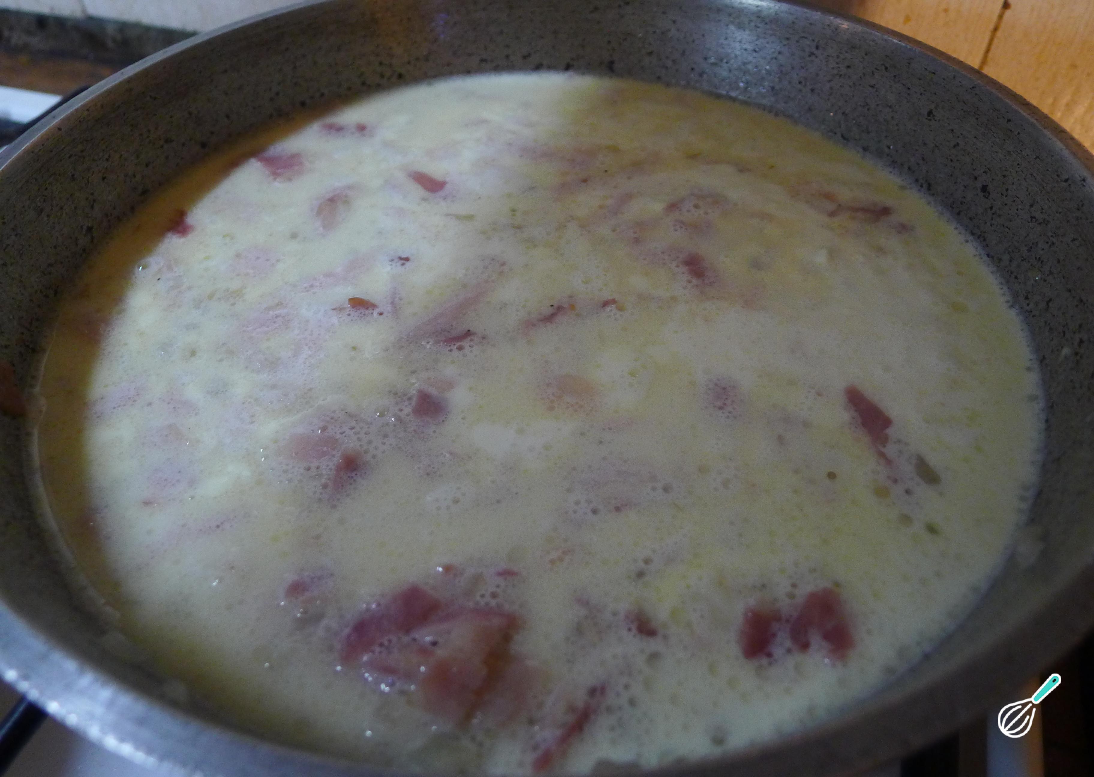 Desligue o fogo e incorpore a mistura das gemas, mexa rapidamente e misture com o macarrão de imediato.