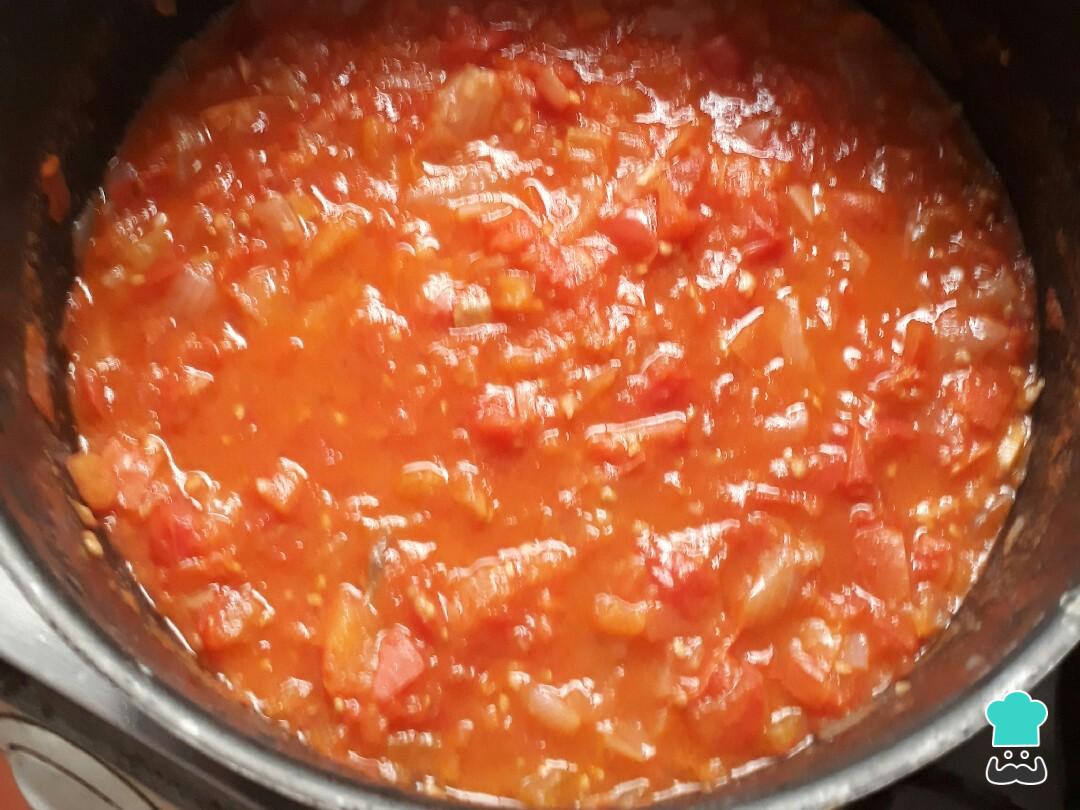 Prepare seu spaghetti de pupunha começando por refogar a cebola picada no azeite. Quando estiver transparente acrescente o tomate pelado e tempere a gosto com oréganos, pimenta e sal. Espere ferver.