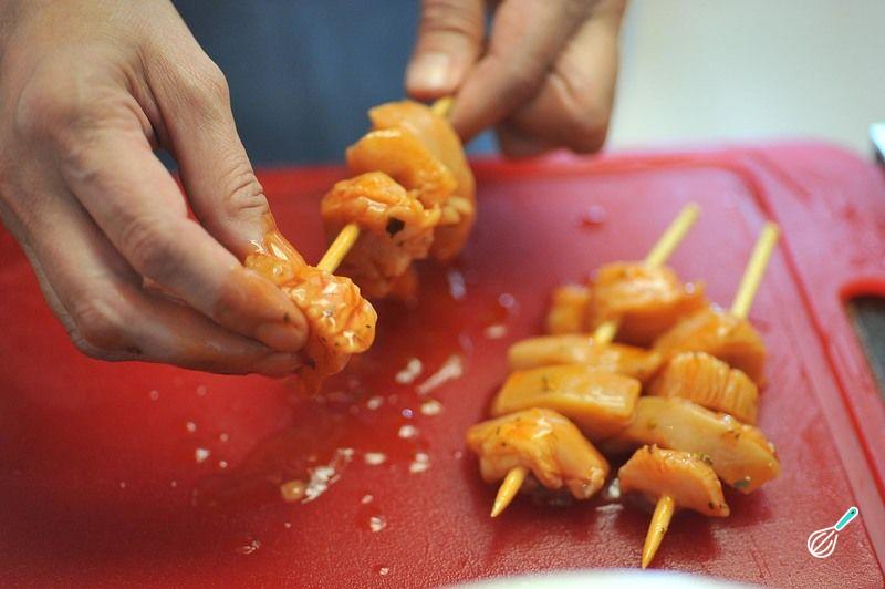 Tempere a carne, o peixe e os legumes com o suco de limão, o molho inglês, sal e pimenta. Deixe repousar por 30 minutos, para pegar o sabor, e depois monte os espetinhos alternando os ingredientes.