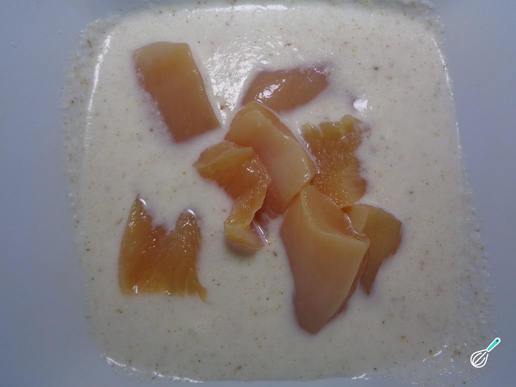 Coloque os cubos de frango para marinar no molho que preparou anteriormente. Deixe esta mistura repousar durante, pelo menos, 15 minutos.