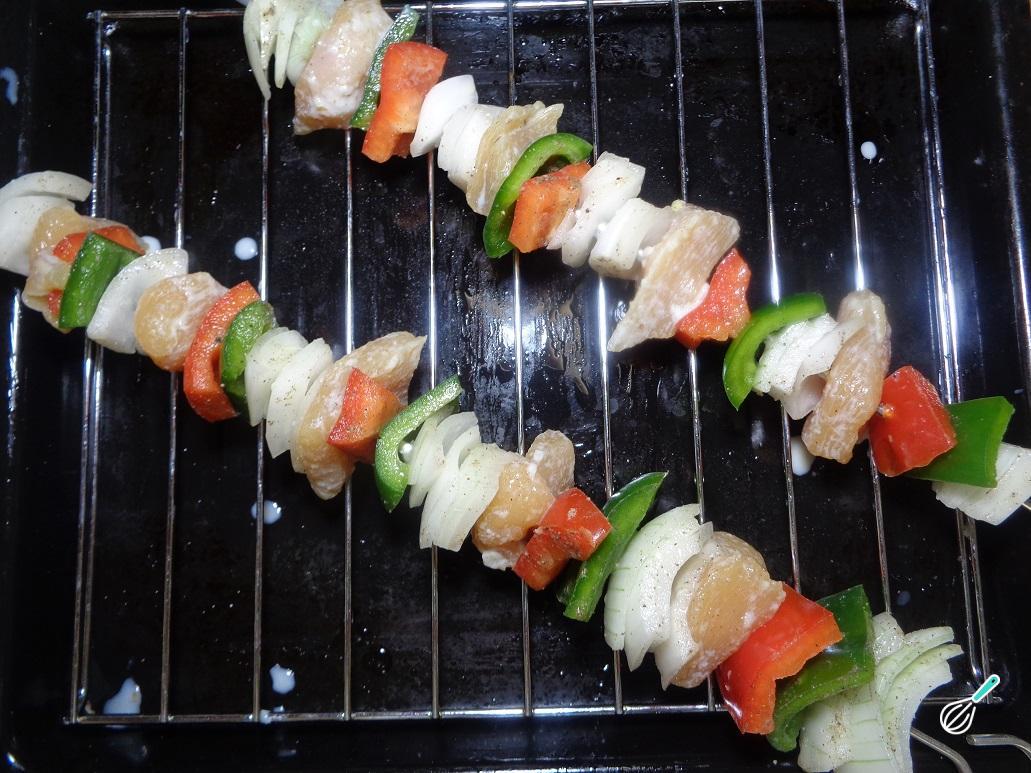 Como fazer Espetinho de frango com legumes: