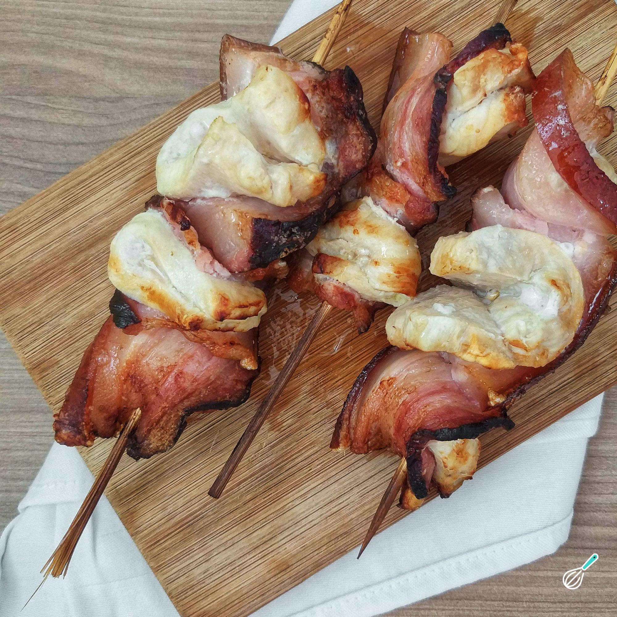 Essa carne de porco tão saborosa ficou incrível nesses espetinhos de medalhão de frango com bacon, pois confere um gostinho defumado e deixa o frango mais gostoso! E isso não é tudo: você não precisa ter uma uma fritadeira elétrica para fazer os espetinhos, também poderá prepará-los na churrasqueira ou no forno.