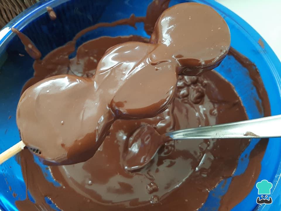 Banhe os biscoitos delicadamente por todos os lados com o chocolate derretido.