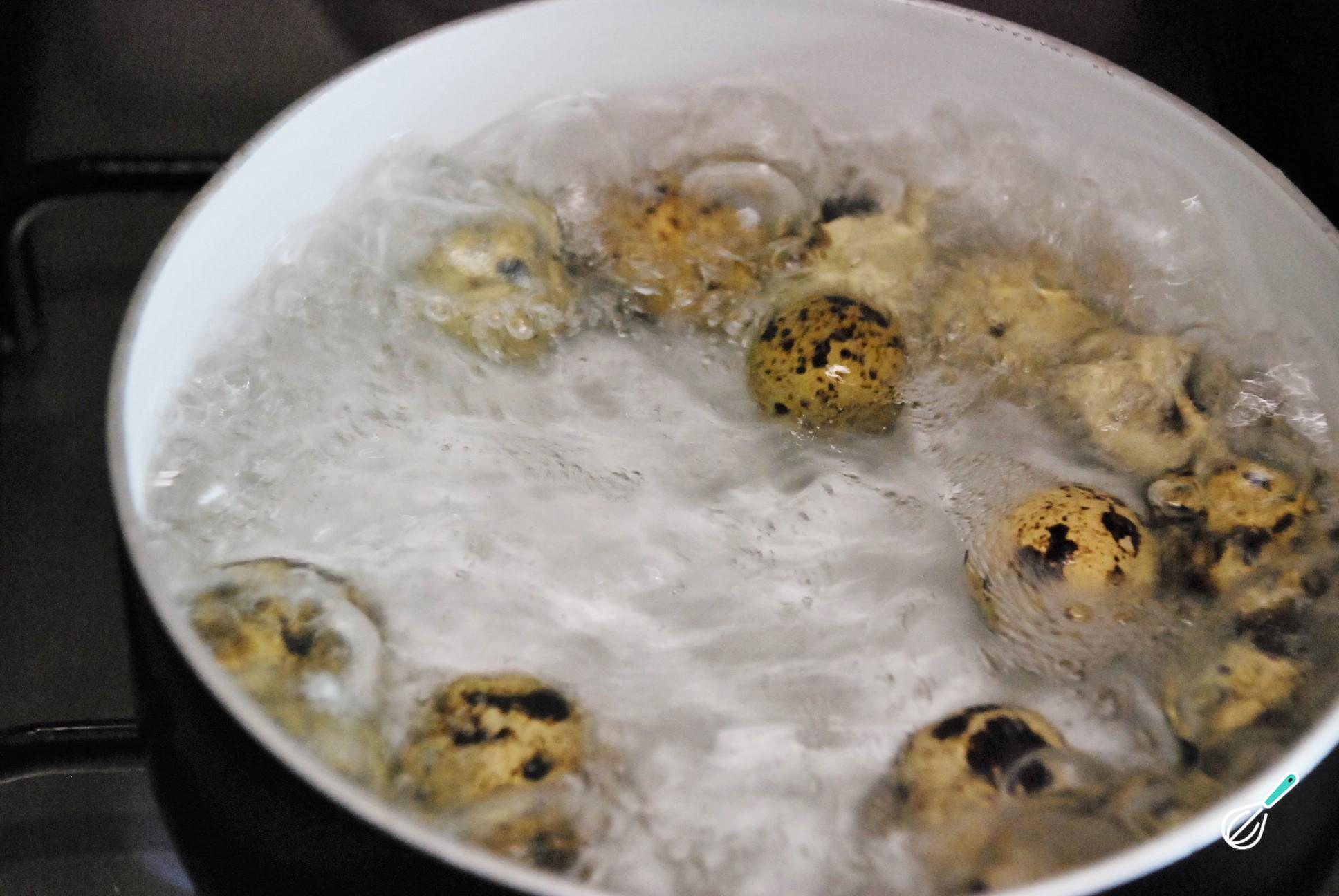 O primeiro passo deste petisco frio é cozer os ovos por 4-5 minutos numa panela com água fervente.