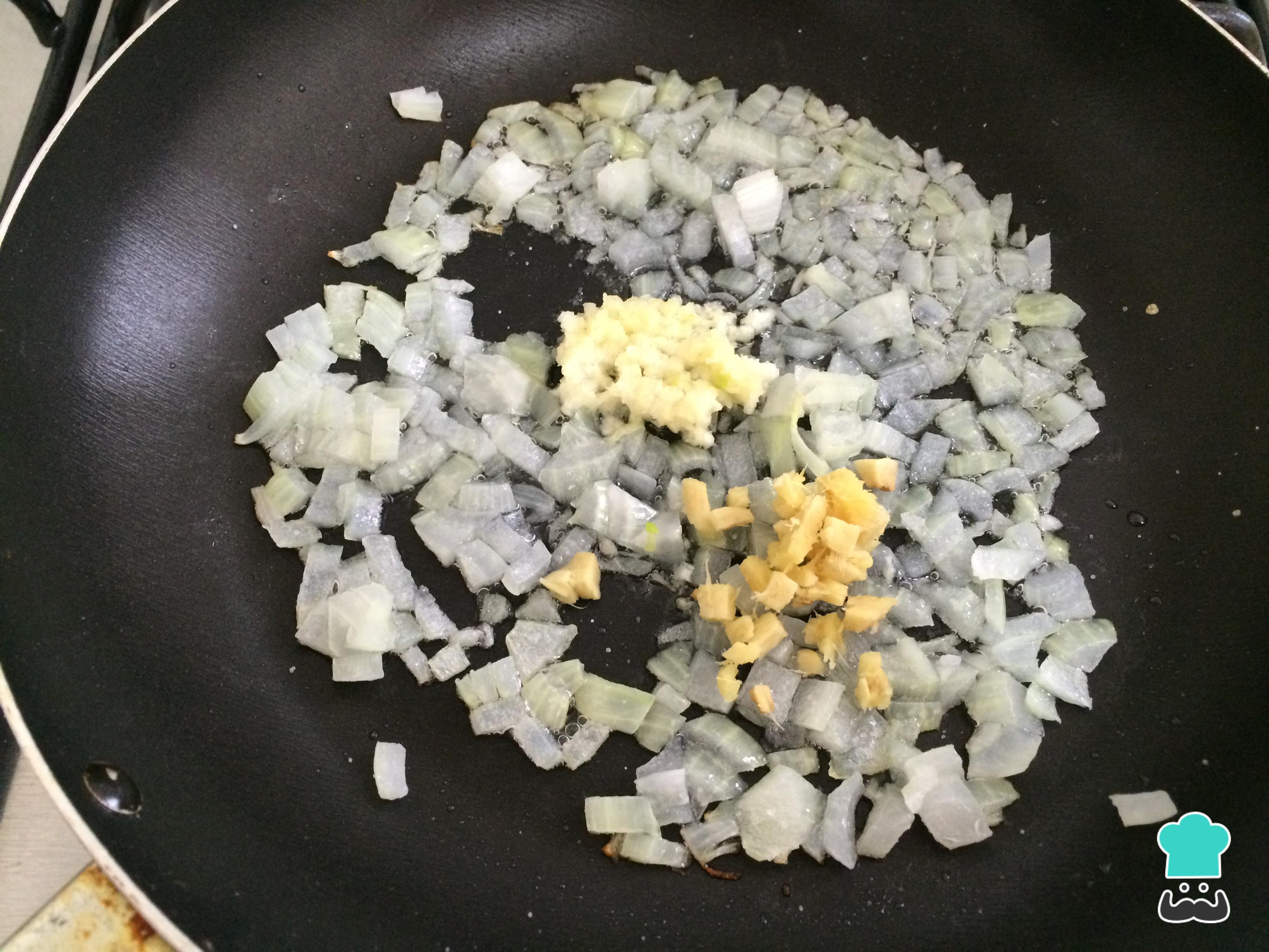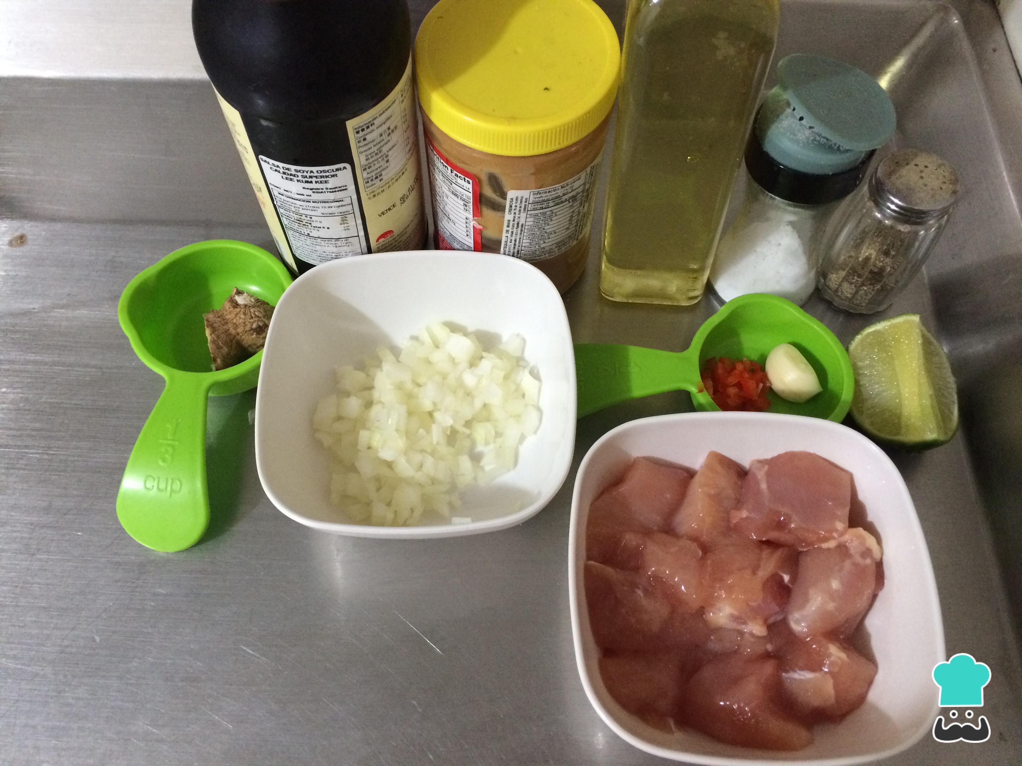 Para fazer o molho satay, leve ao fogo médio uma frigideira com o óleo e refogue a cebola nele, até que fique macia. Depois crescente o alho e o gengibre picados, misture e cozinhe por mais 1 minuto.
