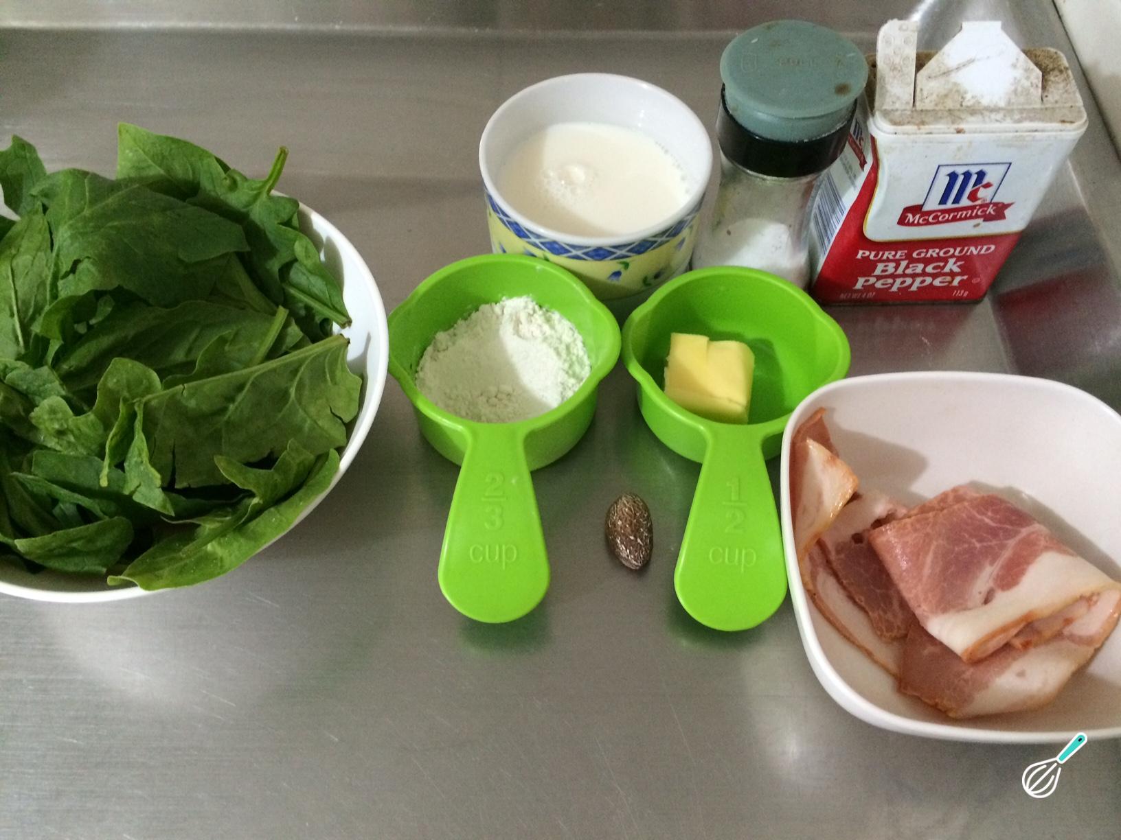 Antes de começar a fazer este prato de espinafre com bacon, junte todos os ingredientes.