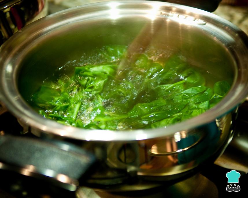 Para fazer essa pasta de espinafre com ricota light, comece por cozer o espinafre até ficar macio. Deixe esfriar.