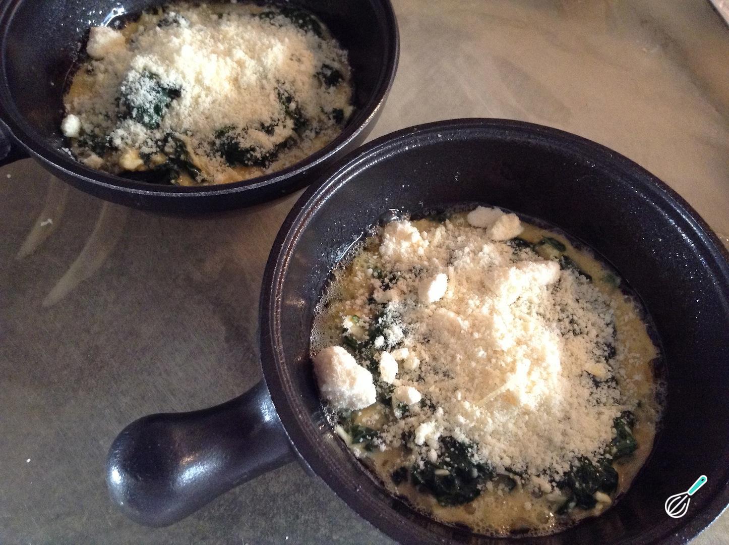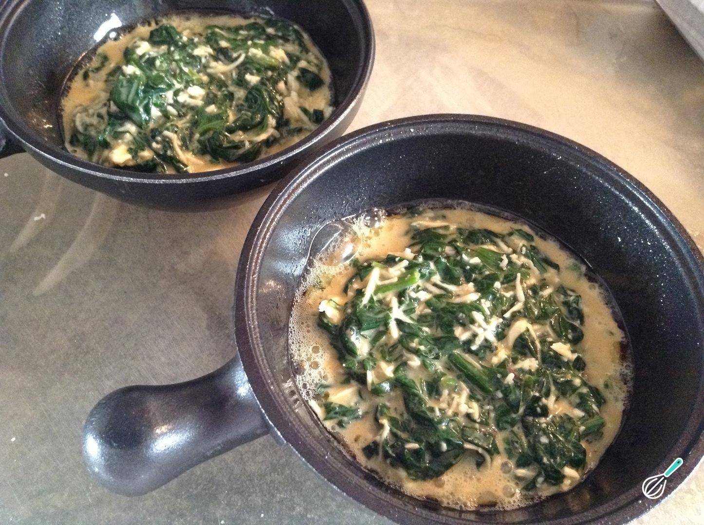 Coloque a mistura de espinafre e ovo em refratários individuais previamente untados.