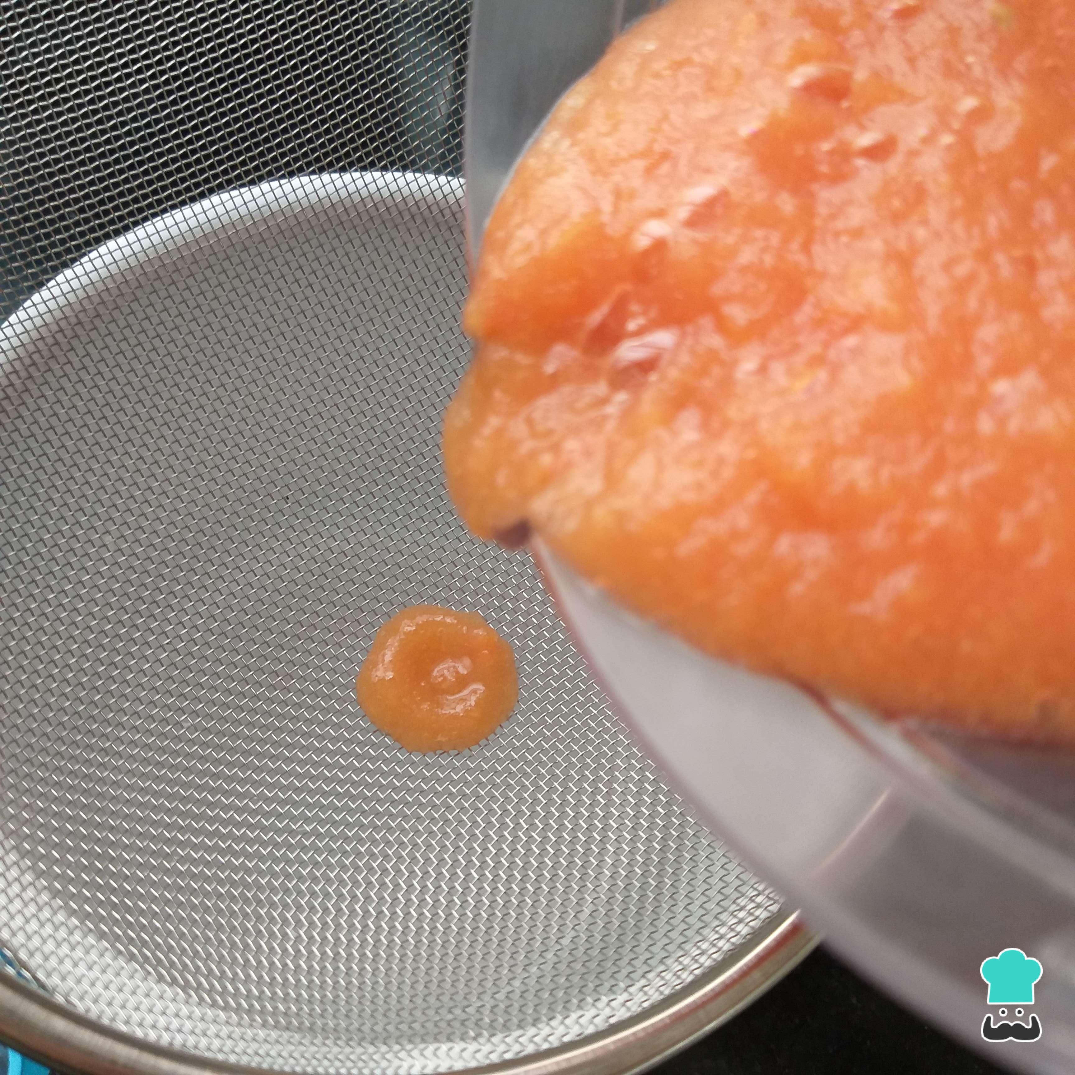 Dica: recomendamos usar uma peneira de rede grossa, para que seja mais fácil filtrar o extrato de tomates. Outra opção é ficar mexendo o extrato na peneira com uma colher, para ajudar a coar.
