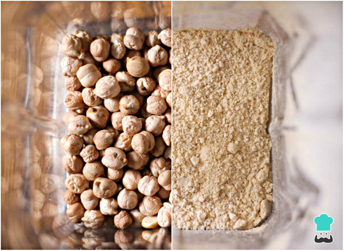 Nesse momento seu grão de bico deverá estar sequinho o suficiente para transformar em farinha. Coloque-o no liquidificador e bata até virar uma farinha o mais fina possível. Peneire e leve de novo ao forno, desta vez a 150ºC por 10-15 minutos, para secar completamente.