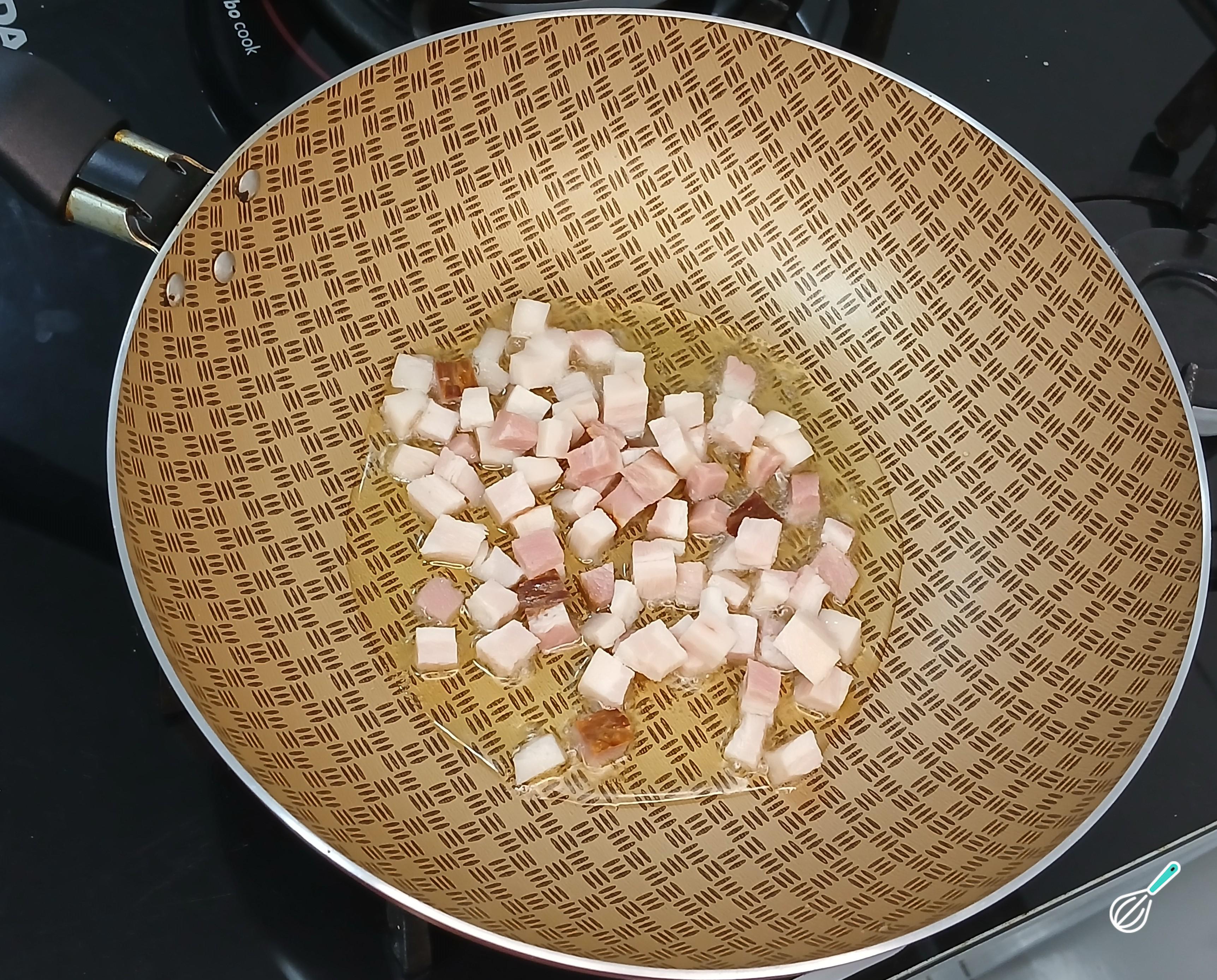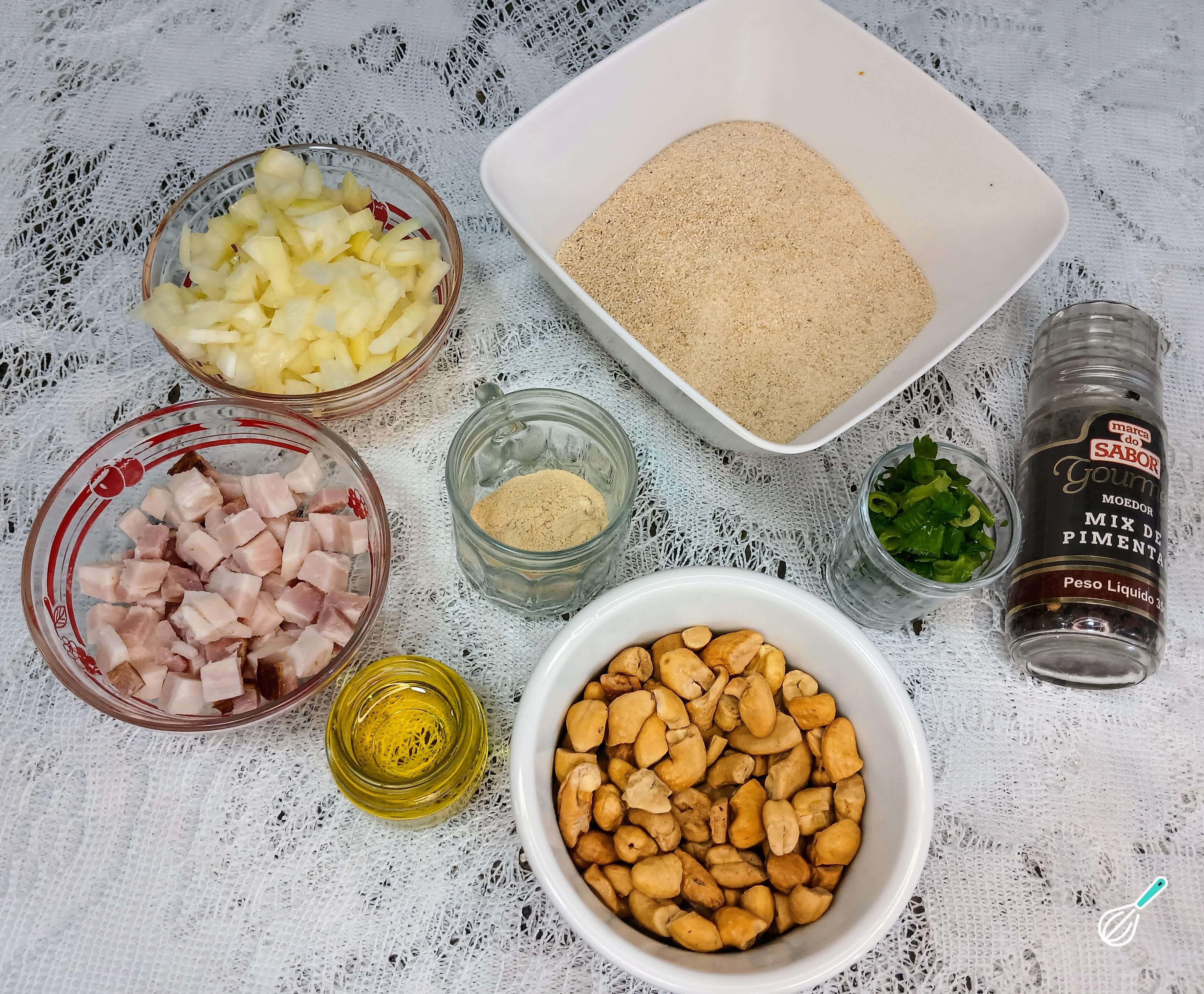Dica: O bacon pode ser substituído por linguiça calabresa ou outro embutido de sua preferência ou pode somente não usá-lo.