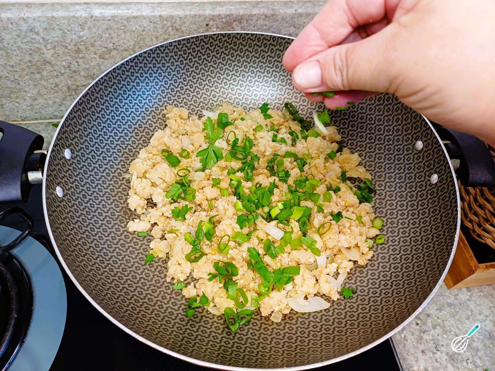 Se desejar, acrescente cheiro verde picado a gosto no final do preparo, misturando bem para incorporar.