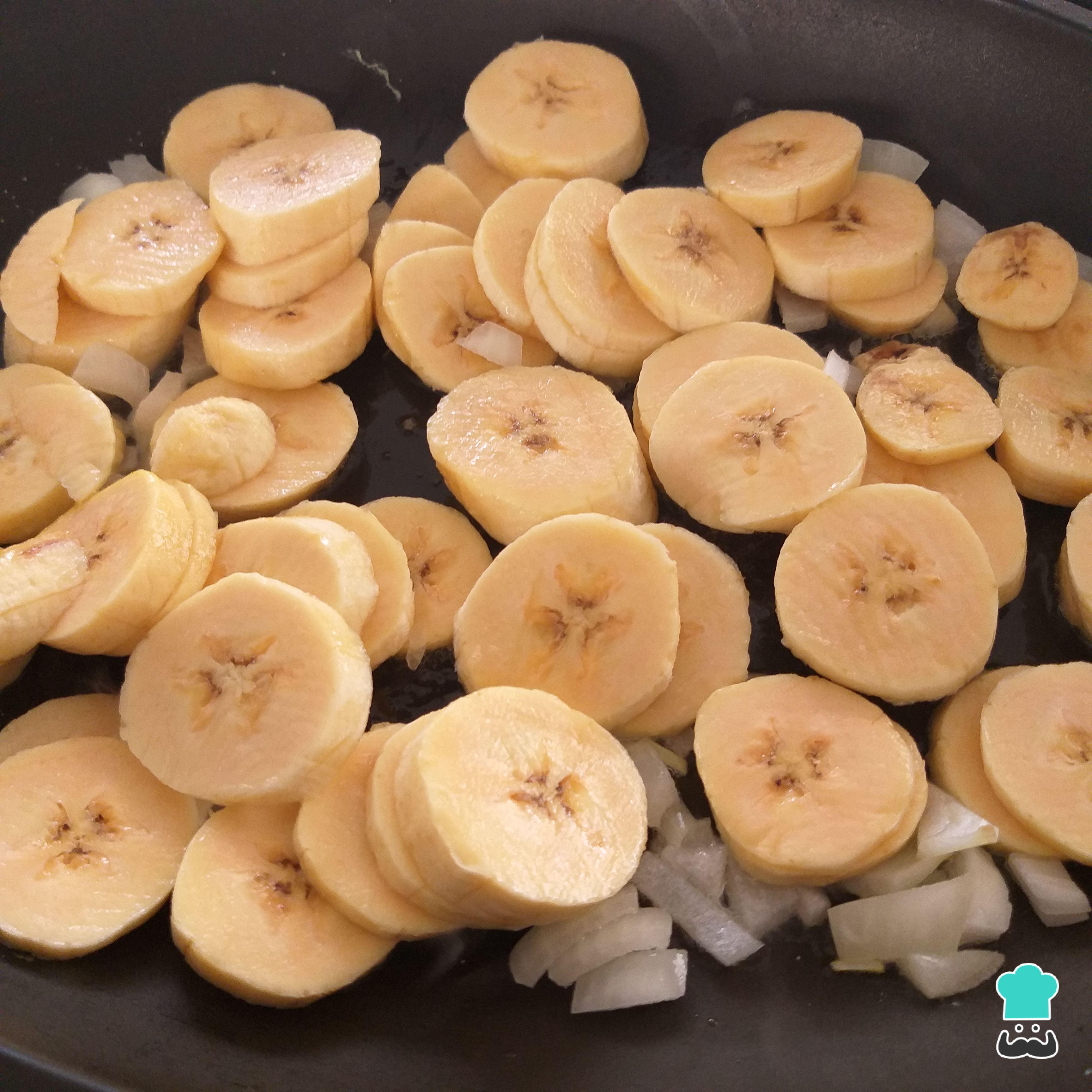 Após a cebola dourar coloque as bananas e mexa mais um pouco.