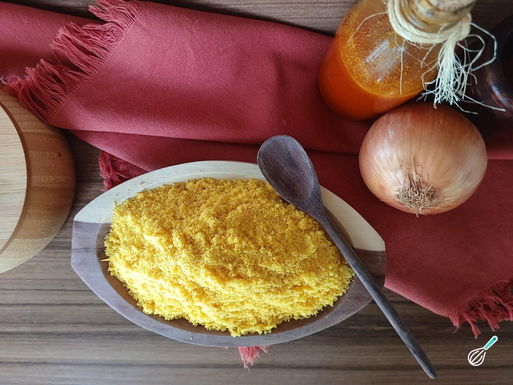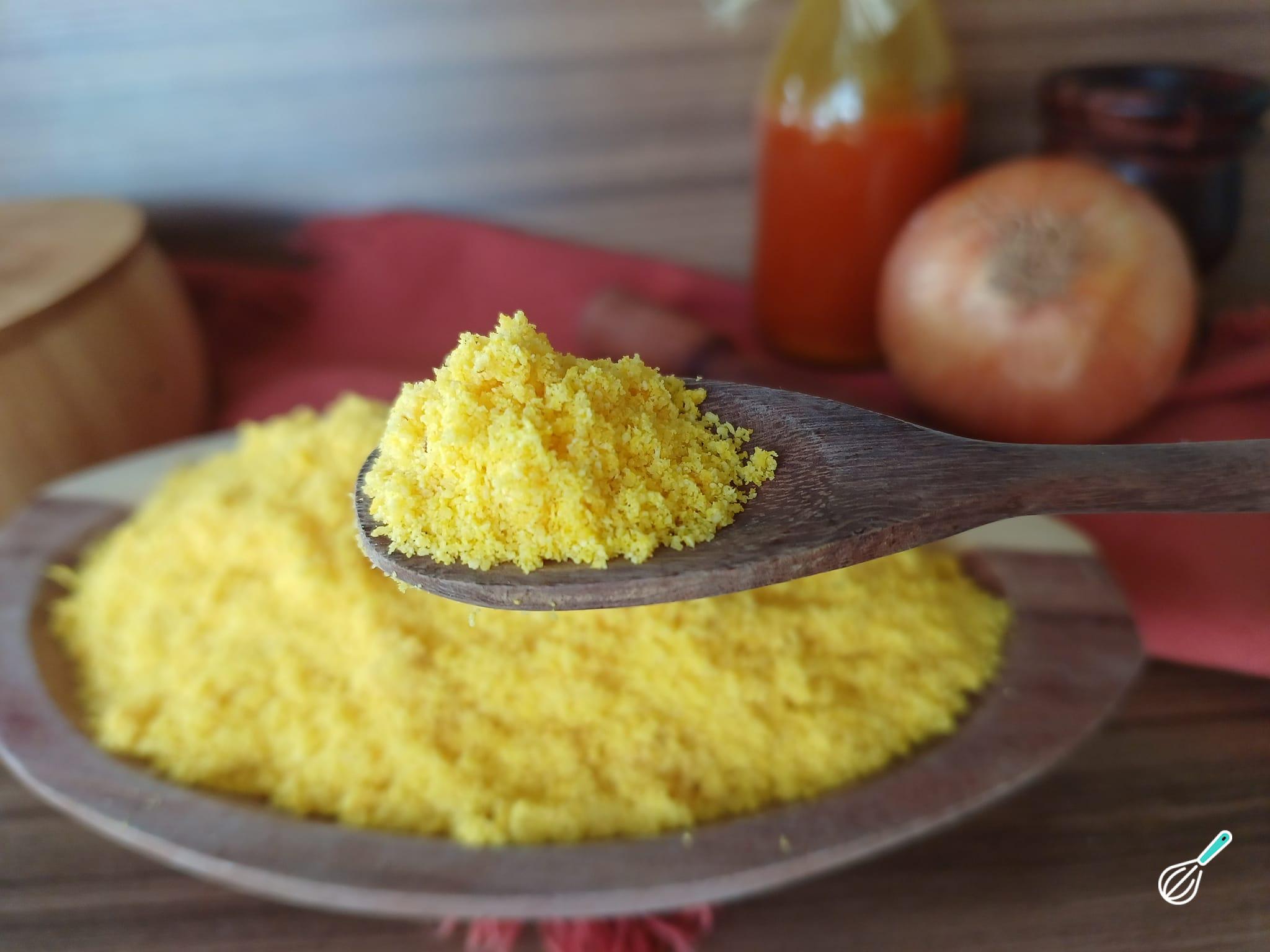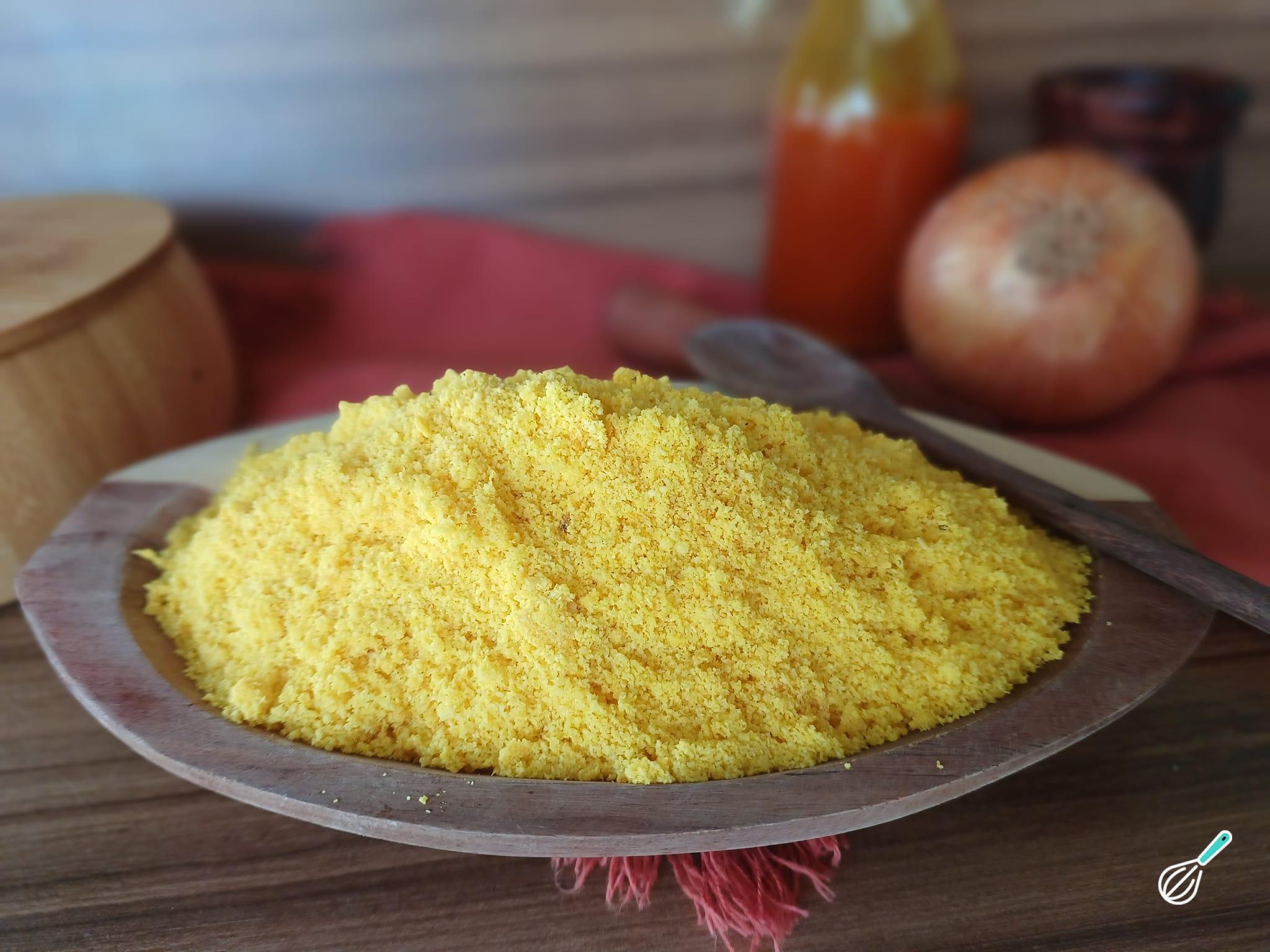 A farofa feita com dendê é saborosa e possui uma cor vibrante que chama a atenção! Além disso, é perfeita para servir com alguns pratos da culinária baiana, como moquecas, xinxim de frango, peixe frito, camarões, etc.