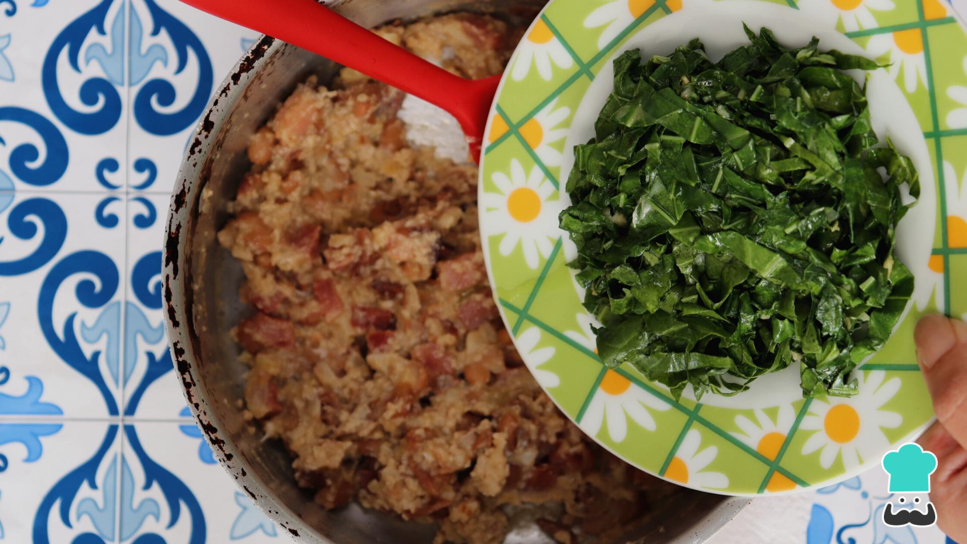 Lembrando que essa receita tem bacon, linguiça e o feijão já cozido e temperado, então pegue bem leve no sal na hora de temperar a couve.