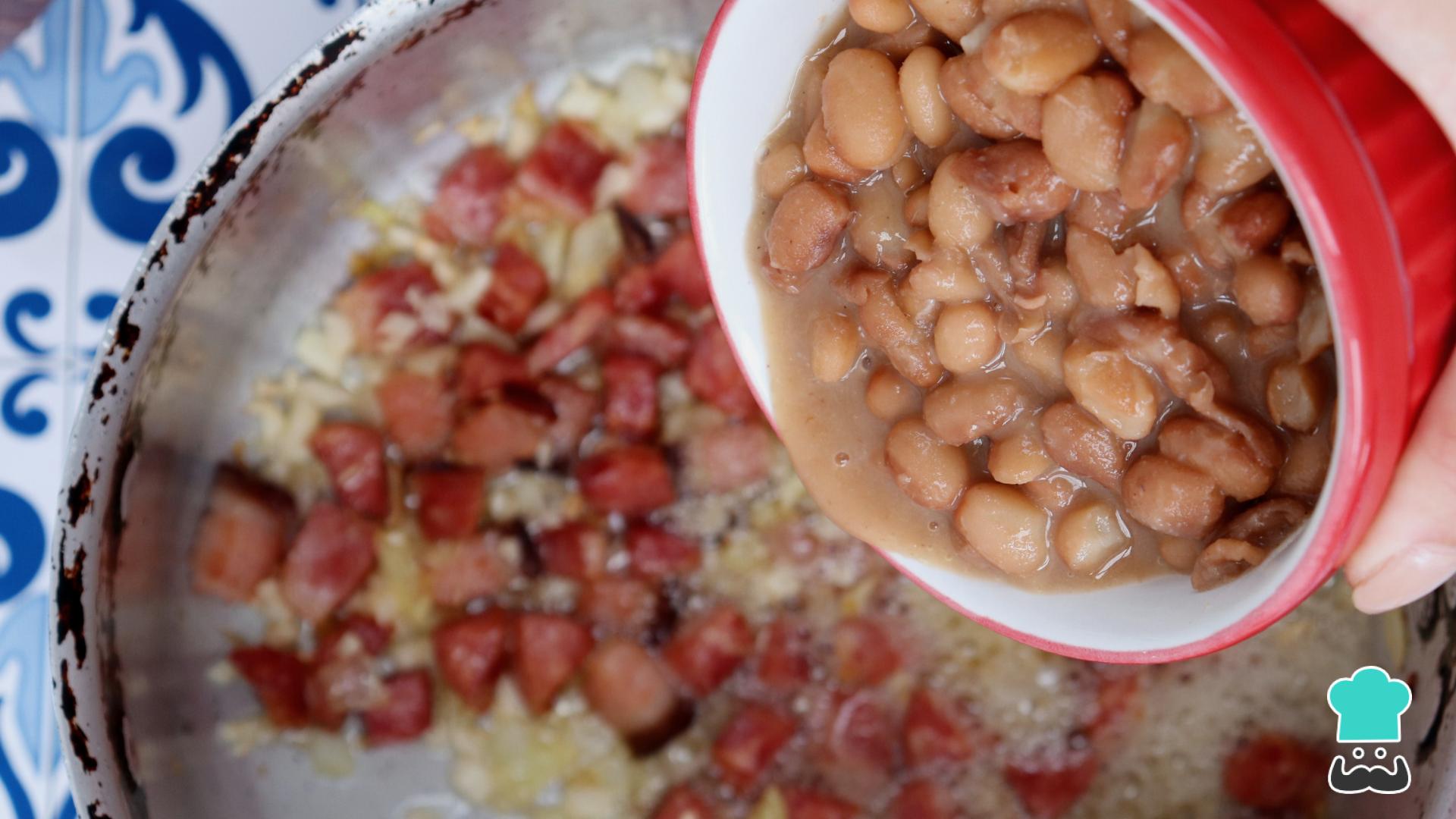 Agora acrescente a xícara de feijão cozido e mexa bem (mas com delicadeza, para não quebrar os grãos de feijão).