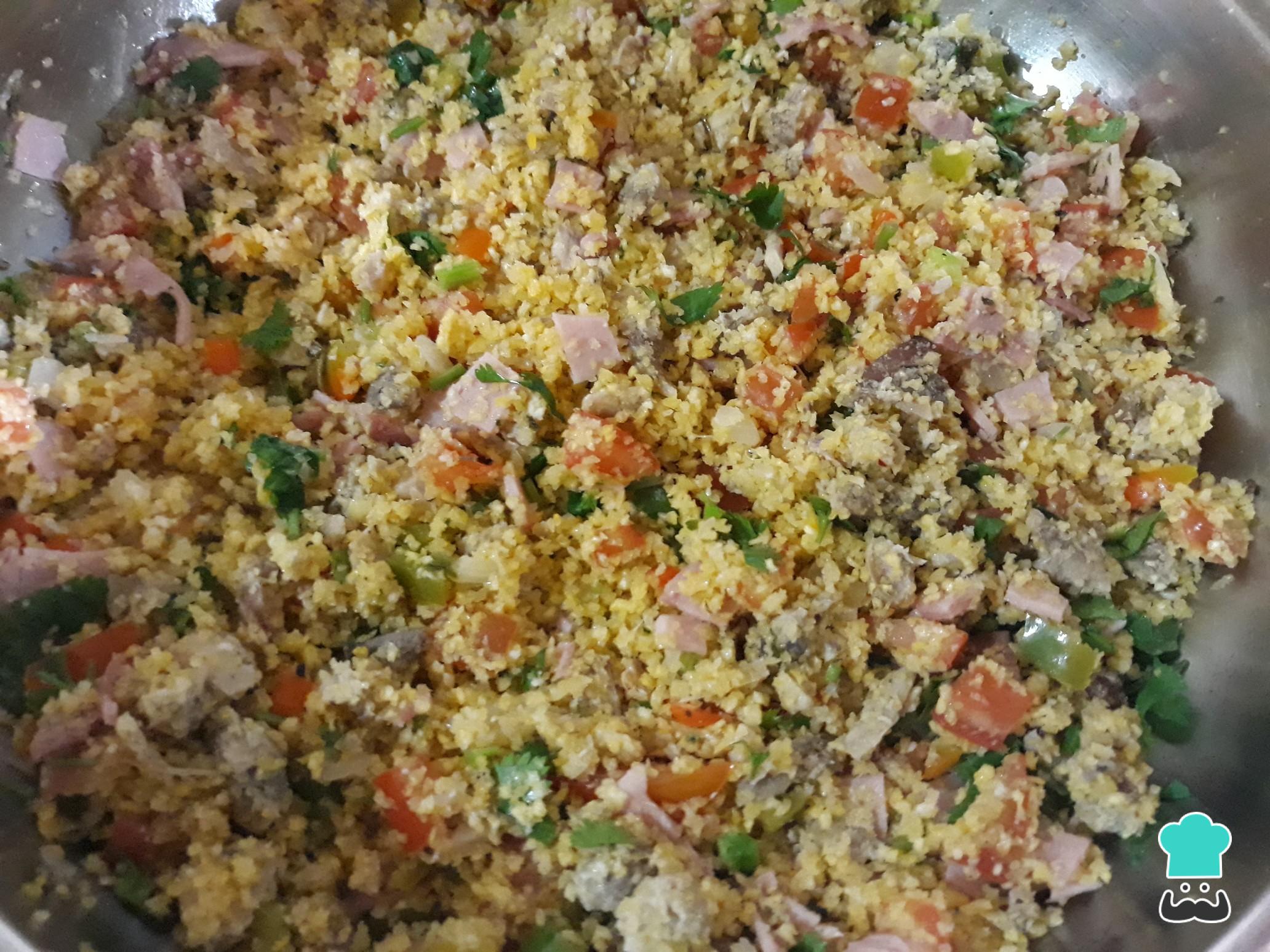 Sirva em seguida essa deliciosa farofa úmida de flocos de milho pré cozido e conte nos comentários o que você achou. Bom apetite!