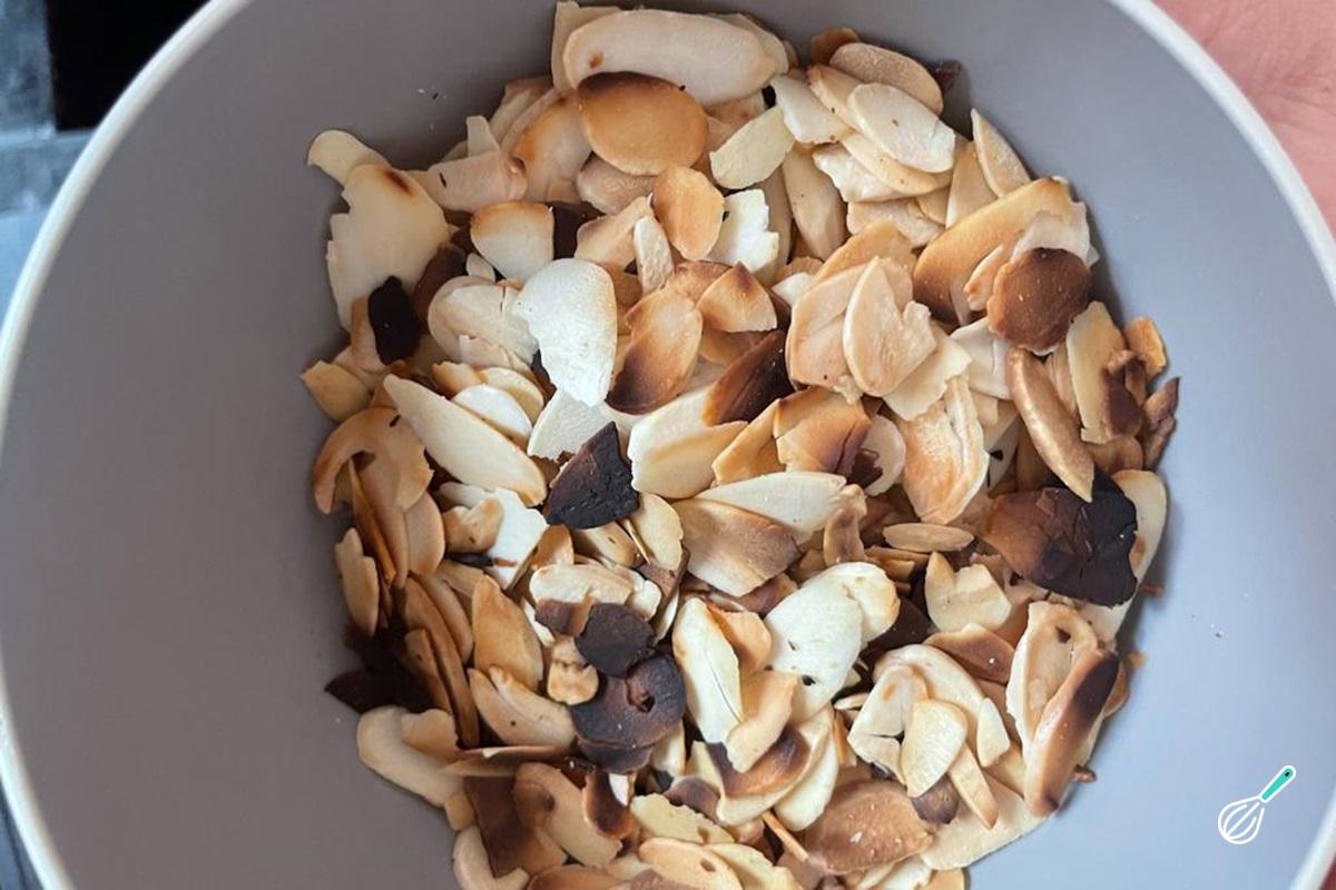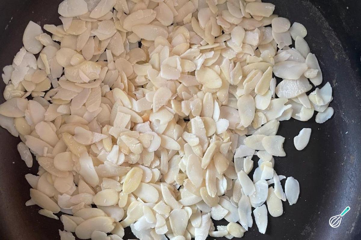 Volte para a frigideira as lâminas de amêndoas torradas.
