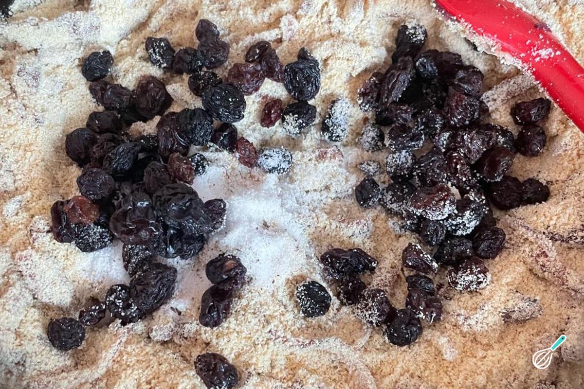 Adicione as uvas passas na farofa.