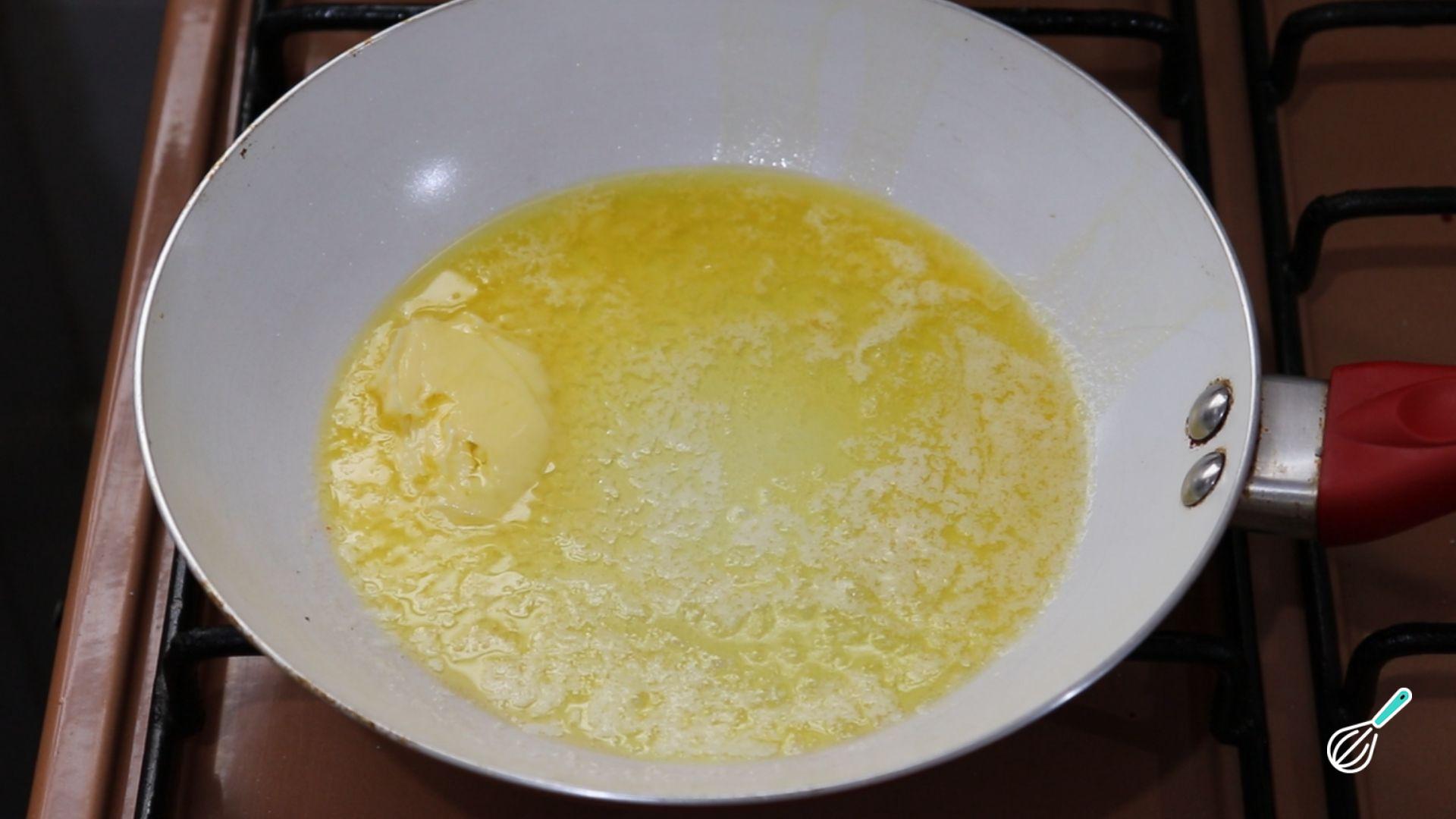 Leve uma frigideira ao fogo médio e derreta a manteiga com um fio de azeite.