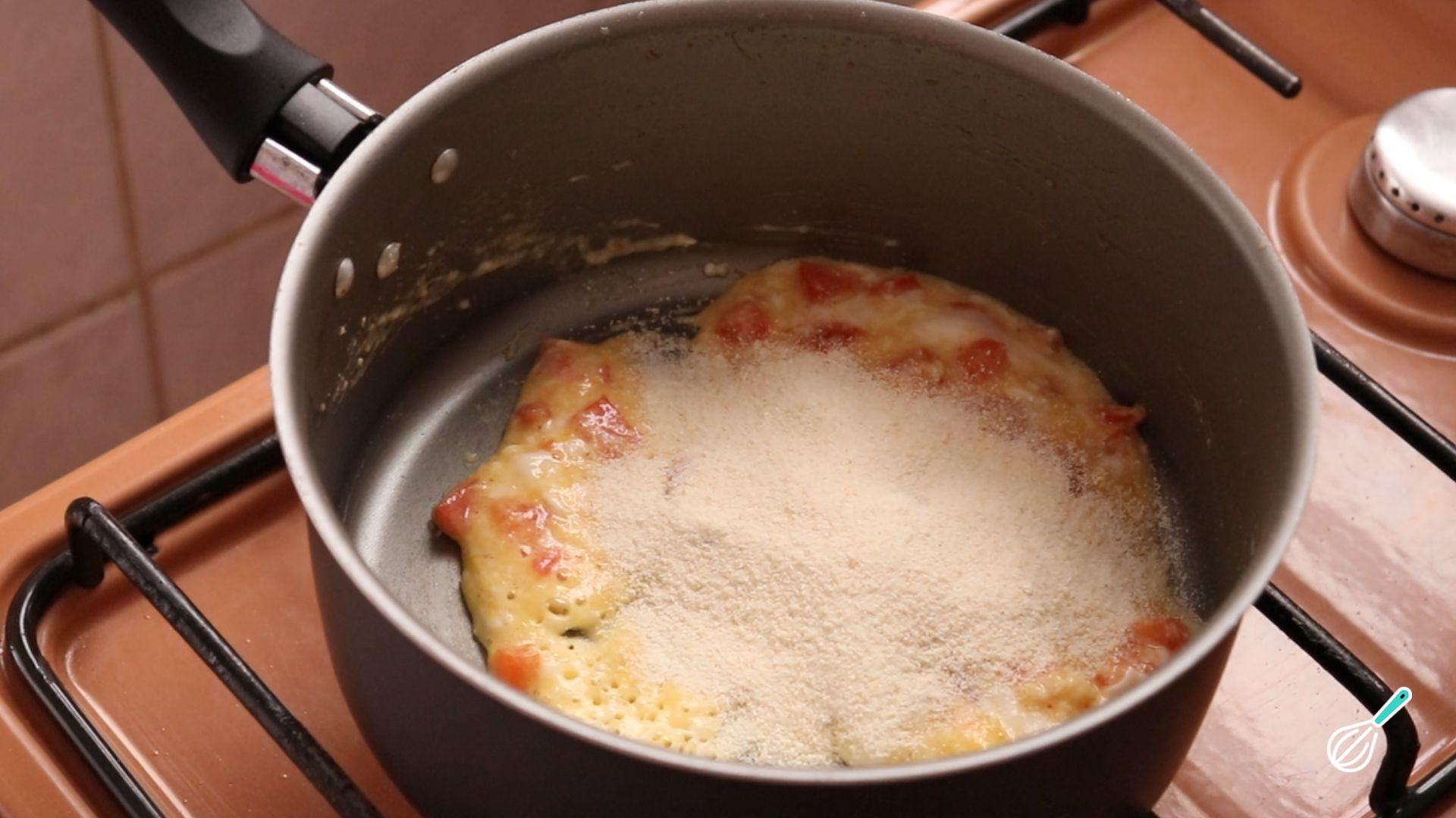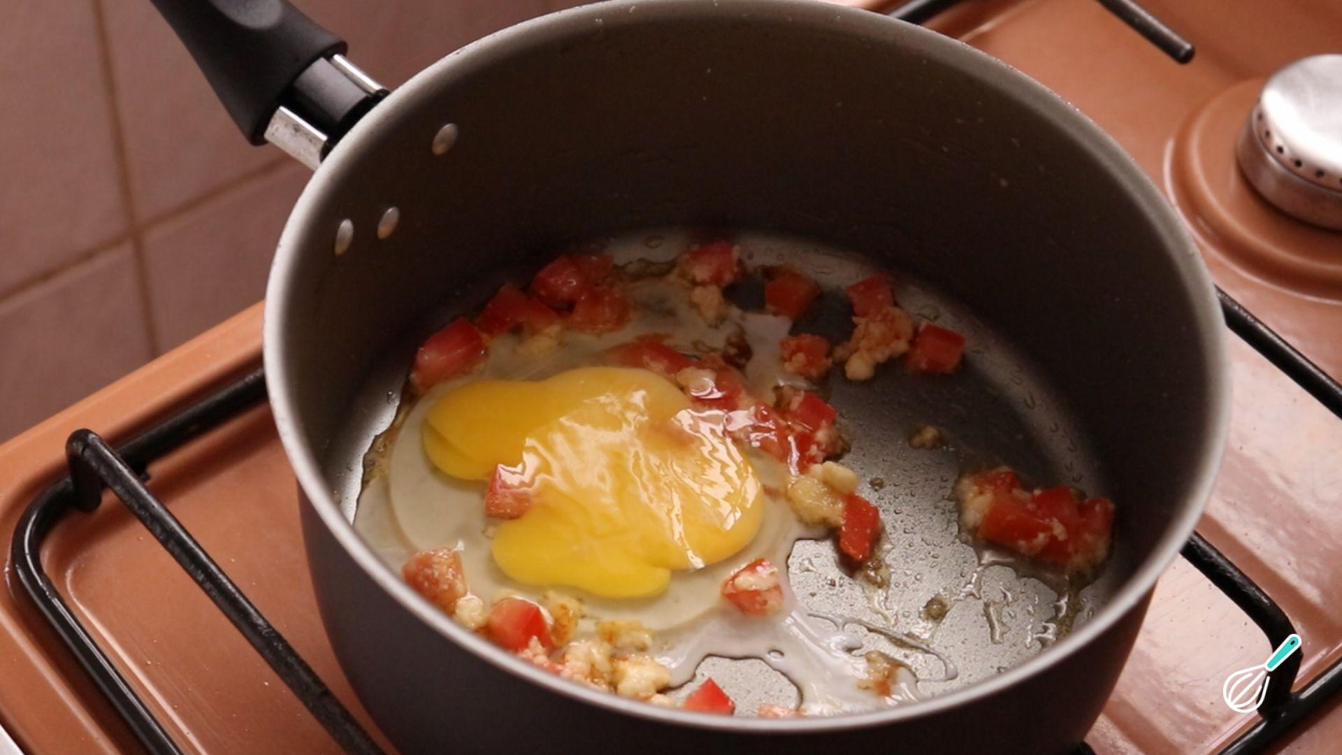 Junte o ovo, mexa e tempere com sal e pimenta a gosto.