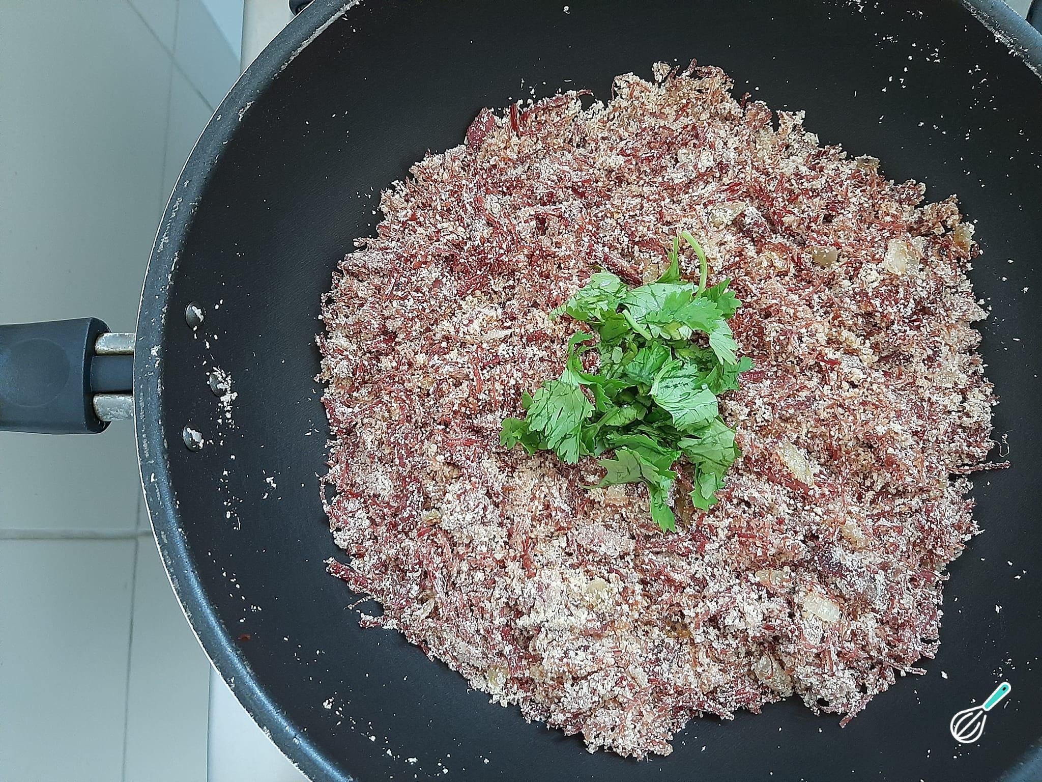 Em seguida, desligue o fogo, acrescente o coentro e misture bem.