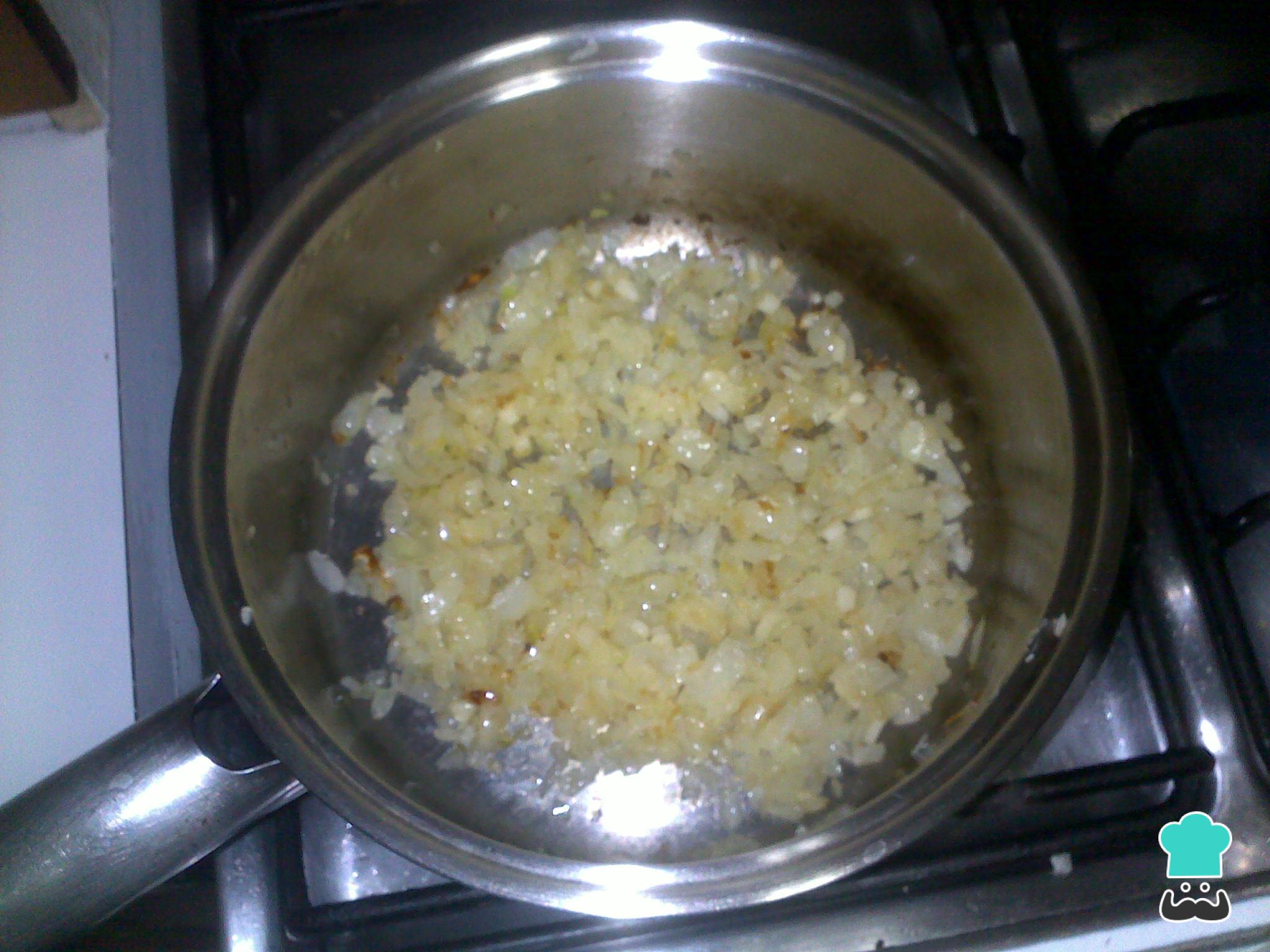 Para preparar esta receita de farofa de pinhão comece por levar ao fogo médio uma panela com o azeite e dourar nela a cebola e os alhos.