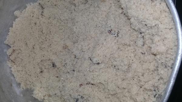 Quando a cebola se apresentar transparente e começar a dourar, baixe o fogo, acrescente a farinha de mandioca e o sal, mexa para torrar.
