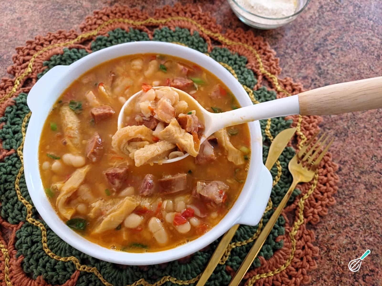 Dica: Se quiser um caldo mais grosso, amasse um pouco de feijão na panela.